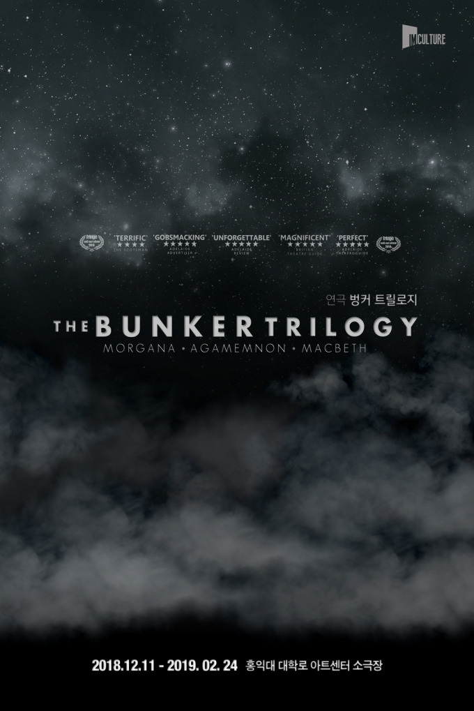 <벙커 트릴로지>. 극에 대한 세세한 설명을 하기엔 제목이 너무나 많은 것을 드러낸다. 말 그대로 '벙커'를 배경으로 하는 '삼연작'이다. 아더왕 이야기를 베이스로 한 <모르가나> 아가멤논과 클리템네스트라의 이야기를 베이스로 한 <아가멤논> 그리고 유명한, 너무나도 유명한 셰익스피어의 <맥베스>가 트릴로지를 구성하는 이야기의 원전들이다. 그리스 로마 신화야 전세계적으로 유명하고 아더왕이나 맥베스 역시 영미문학권에선 구태여 설명이 필요하지 않을 정도로 익숙한 이야기들이지만, 이걸 어떻게 '벙커' 안에 녹여낼 지는 예상하기가 어려웠다. 하지만 트릴로지를 챙겨보기란 결코 쉬운 일이 아니었다. 우선 티켓팅부터가 쉽지 않았다. 겨우 100명 남짓 들어가는 홍아센(홍익대 대학로 아트센터) 소극장 무대에 내 자리 하나 확보하기 위해선 치열한 피켓팅이 필요했다. 내가 성공한 건 겨우 두 자리, <모르가나>와 <아가멤논>뿐. 만약 근시일 내에 <맥베스>의 자리를 구한다면 전체적인 후기도 '트릴로지'식으로 새로 쓰는 일이 벌어지겠지만, 우선은 내가 본 두 극, <모르가나>와 <아가멤논>에 대해 쓰려고 한다.