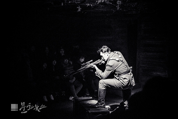 벙커라는 제목은 특별한 은유가 아니다. 벙커는 말 그대로 벙커이며, 장소적 배경이자 심리적 배경으로 병사들과 관객들을 이 극에 잠기게 만드는 장치이다. 우리는 극이 시작됨과 동시에 제1차 세계대전의 어느 참호 속에서 병사들과 함께 갇혀있다. 좁고 퀴퀴하고 가끔은 숨쉬기 곤란할 정도의 불편함이 어른거리는 그 공간은 '편안한 관극'이 불가능하게끔 만드는 극의 전제적인 장치로 기능한다. '천만 명의 병사들의 진실을 알아달라'고 얘기하는 이 극의 목소리는 '우리와 함께 참호 속에서 펼쳐지는 이야기를 지켜봐달라'는 메시지를 내포하고 있다. 그래서 우리는 참호 속에 떠도는 100여 명의 유령들처럼, 함께 숨쉬고 지켜보고 듣고 때론 눈물지으면서도 현실에 개입할 수 없는 죽은 병사들의 영혼처럼 참호 안에서 병사 1, 2, 3, 4의 얘기를 들어야 하는 대업을 받아 들인다.