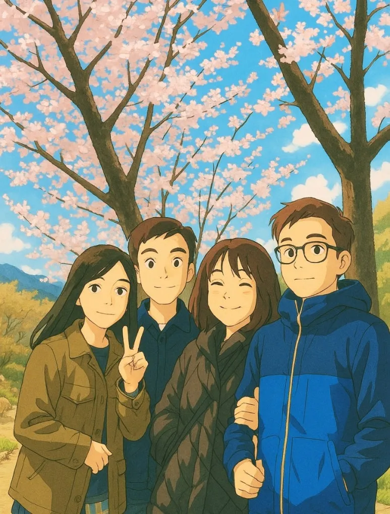 'W, S, Y, H는 결혼 기념 봄맞이 남쪽 여행을 참 잘했다.'
