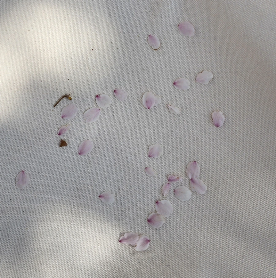 봄바람에 연분홍의 다섯 벚꽃잎이 햇살, 바람, 추억, 시간, 사랑을 담아 파란 하늘로 꿈결처럼 날아서 빈 의자에 쌓인다.