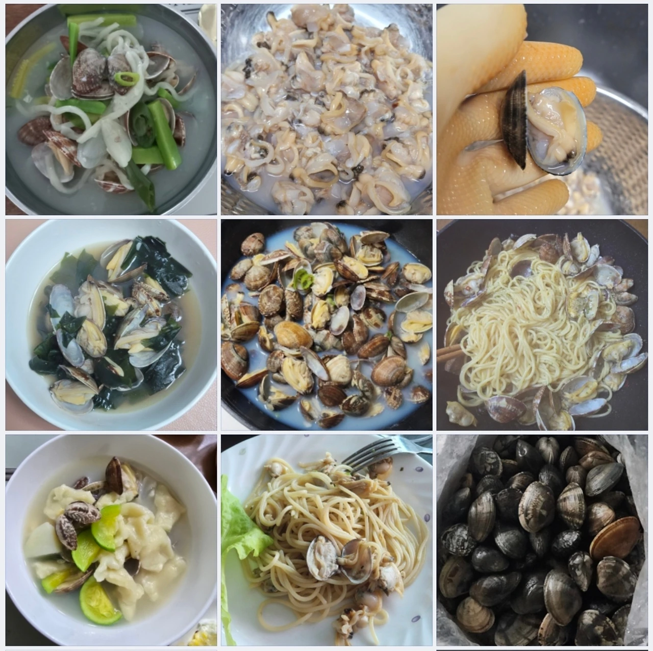 난 통째로 우려내 갯것이 주인공인 조개탕을 끓여 먹었지만, 올라온 음식 사진엔 부재료로 올라간 갯것이지만 국수면보다 수제비면보다 스파게티 면보다, 미역보다 주인공이고 눈에 띈다.