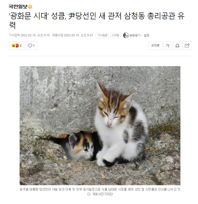 나의 정신 건강을 위해 최대한 뉴스는 피하고 있다. 끔찍한 사고나 사건 뉴스를 접하면 며칠은 악몽을 꾸고는 했다. 대선 전후에는 더욱 뉴스를 피하게 된다. 보기 싫은 이미지들과 뉴스가 너무나 많다. 오늘 짝꿍이 솔루션을 제시했다. 미국에서 트럼프 당선 이후 미국의 국민들 조차 얼마나 그들의 대통령을 보기 싫었는지 크롬의 확장 프로그램을 만든 것이다. 뉴스에서 뜨는 이름을 걸러내어 고양이 사진으로 바꿔주는 것. 크롬에서 'make america kittens again'이라는 확장 프로그램을 추가하고, 보기 원치 않는 이름을 설정해 두면 그 이름을 포함한 뉴스의 사진을 귀여운 고양이 사진으로 바꿔준다. 조금 아쉬운 건 PC에만 적용된다. 모바일에서도 된다면 너무 좋겠다 싶지만 아쉽더라도 결과가 만족스러워서 뉴스를 보게 된다면 꼭 PC 크롬을 통해서 볼 생각이다.