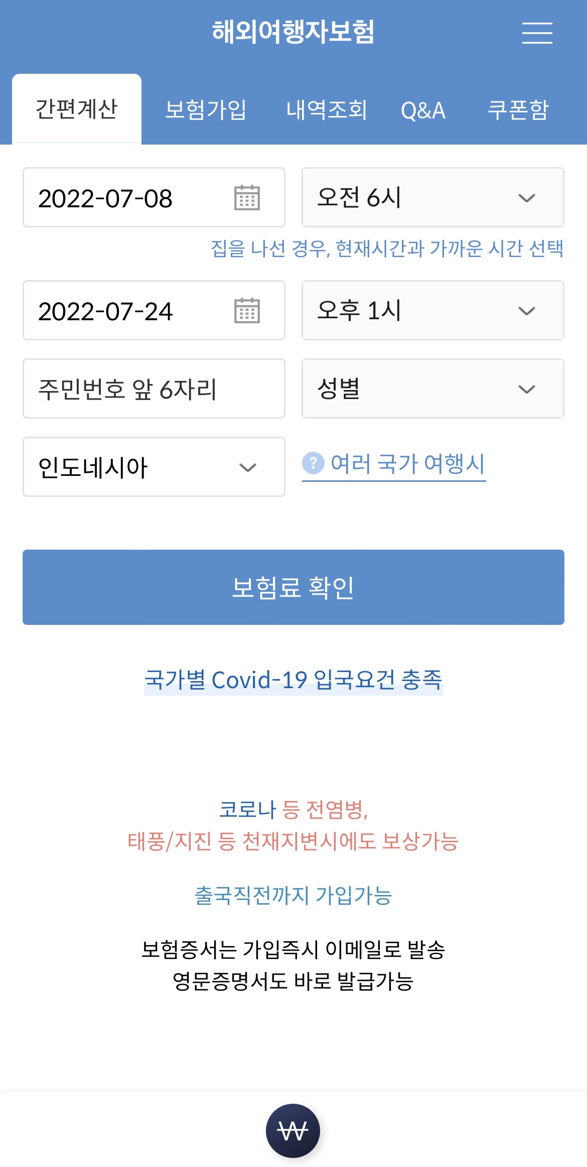 매번 검색해서 개별로 가입했던 여행자 보험을
