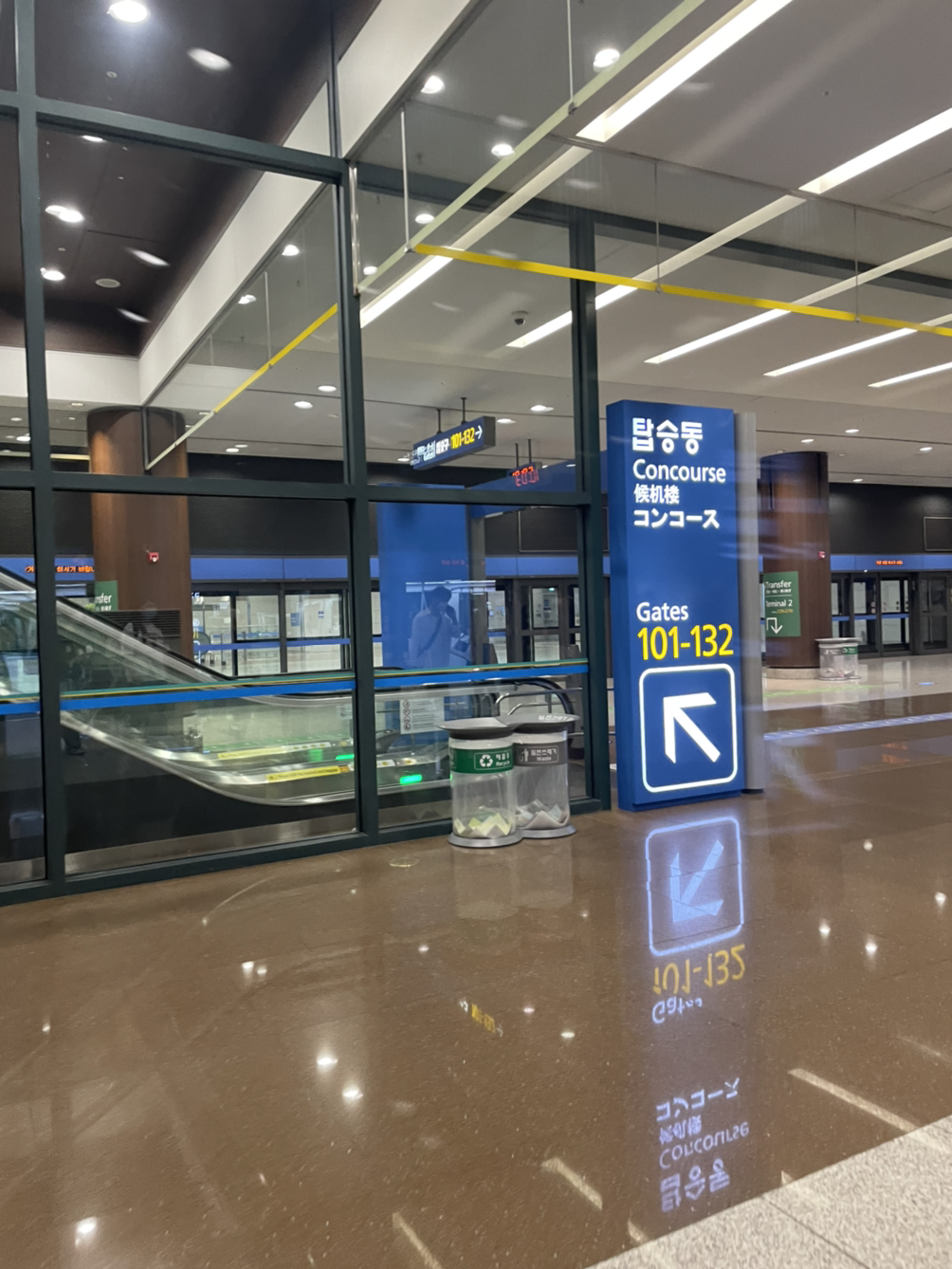 10시 반, 탑승 전에 간단한 식사로 간단하게 샌드위치 같은 걸 먹고 싶었다. 가장 끝에 있는 탑승 게이트까지 걸어봤건만, 카페도 모두 문을 닫고 먹을 데가 마땅치 않았다. 그나마 푸드코트가 열려 있었는데, 선택지는 돈까스나 한식. 비행기 안에서 몇 시간을 앉아 있을 거라 살짝 고민이 되었다. 돈까스를 먹을까 하다가 역시 튀긴 건 부담스러워서 비빔밥을 주문했다. 물은 무조건 구매해야 했다. 나는 화장실 앞에 있는 식수대를 이용해서 물을 마셨고, 챙겨 온 물통에 물을 담으며 혹시나 싶어 멀미약을 먹었다.