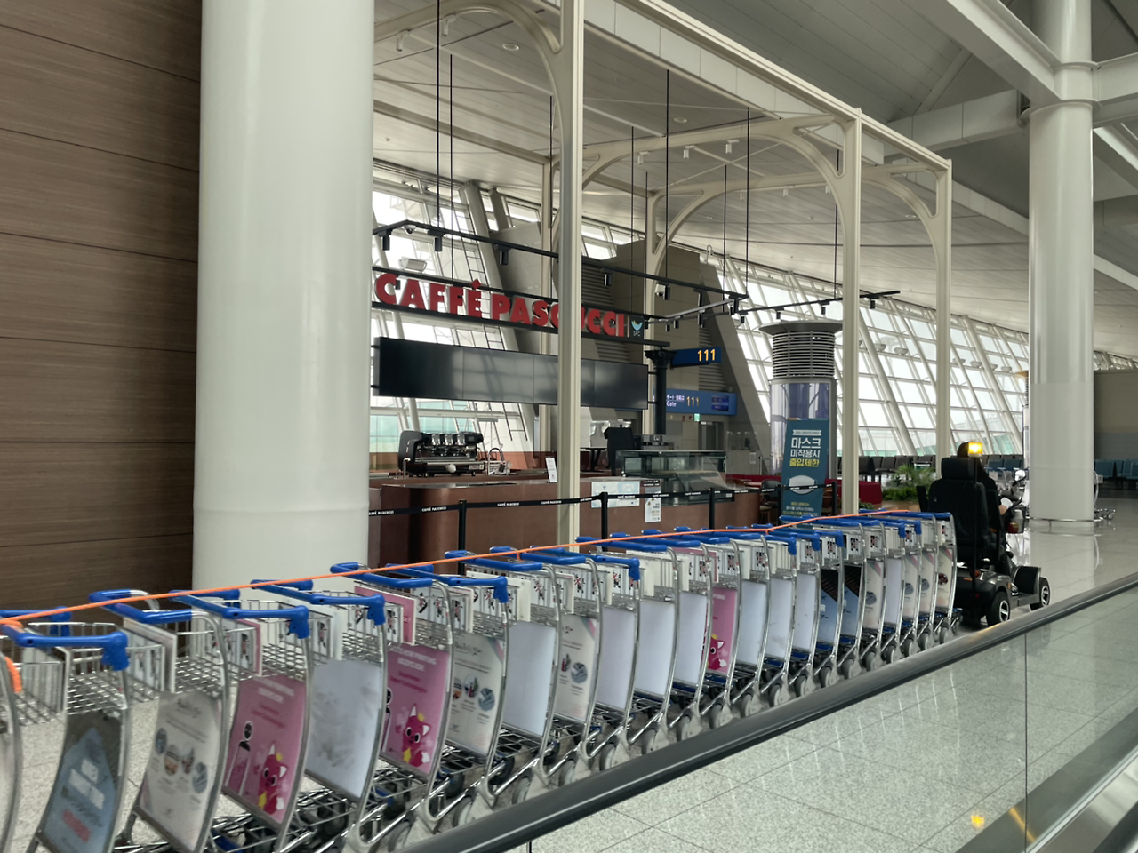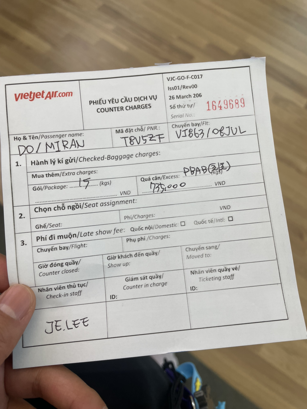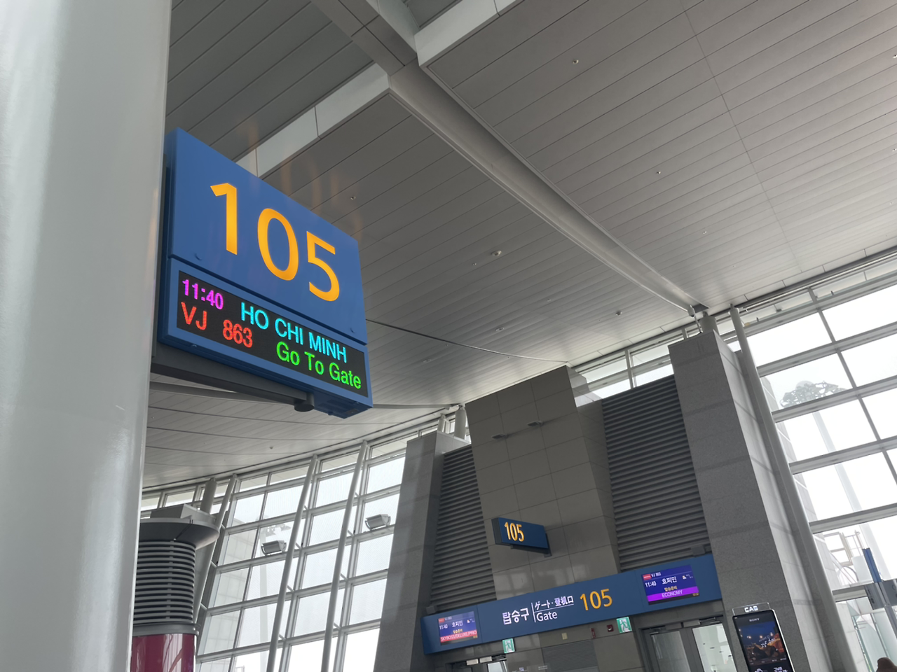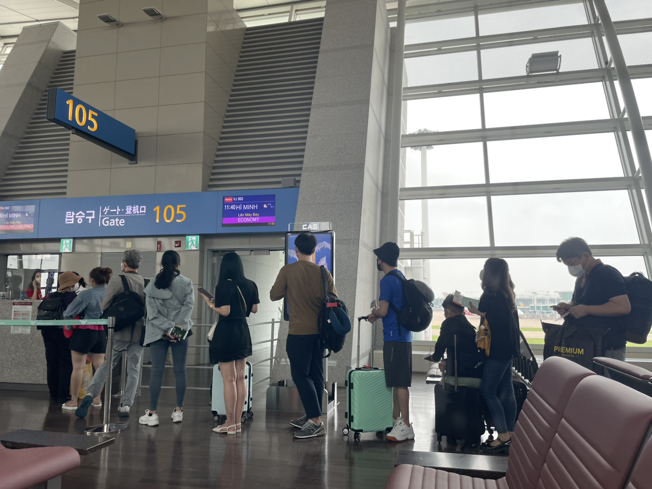 8시 20분, 두어 시간 걸려 인천공항 1터미널 도착. 체크인을 하려고 줄을 섰다. 비엣젯 항공 처음 타는데 "15kg 수하물 무료"로 표기되는 건 오류라고 했다. '그냥 부쳐주는 경우'도 있더라 하는 글도 보았고, '안되면 현장 추가하지 뭐' 하는 생각으로 무작정 기다려 보았다. 앞서 체크인했던 외국인 여성이 종이 한 장 들고 한참을 얘기했고, 무슨 일인지 캐리어를 열고 뭔가를 찾기 시작했다. 내 앞의 어떤 외국인 무리도 뭔가 얘기가 길어졌다. 대기 인원이 생각보다 많지 않고, 생각 없이 그냥 서있다가 애매하게 배낭을 메고 30분 넘게 기다렸다. 아주 오랜만인 여행이라 살짝 긴장했던 것 같다. 카트에 배낭을 내렸어야 했는데 무겁다는 생각을 못 했다. '지금이라도 카트를 가져와?' 하는 생각을 하면서 그렇게 어영부영 앞으로 앞으로 이동했고 드디어 내 차례. 역시나 수하물은 새로 추가해야 했는데, 카드는 안되고 무조건 현금/계좌이체로 받는다고 해서 바로 이체하고 짐을 부쳤다. 추가금 43,000원. 조금 아깝지만 예상했던 일이니 감수해야지.