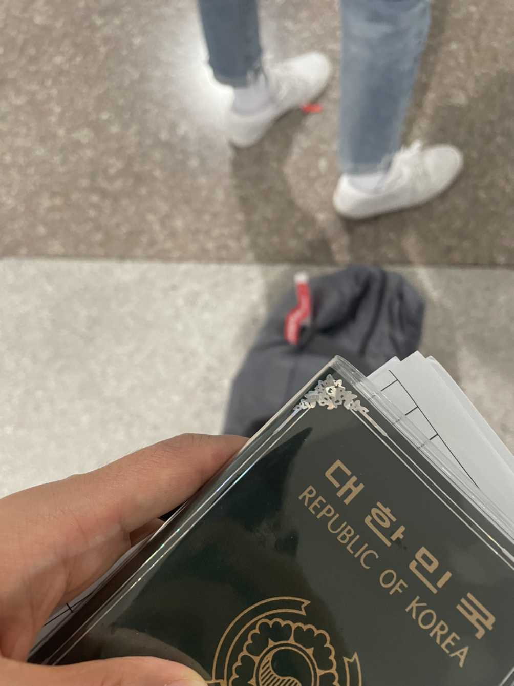16시 7분, 입국 심사를 기다리는데, 앞서 심사를 받은 이들 중에 많은 수가 나가지 못했다. 무슨 이유인지 모르겠지만 바로 내 앞 앞의 사람은 누군가에게 불려 갔다. 내 앞에 서있던 키 크고 훤칠한 동양 남성은 통과. 나도 심사 담당자 앞에 섰다. 백신 증명서, 여행자 보험 증명서, 항공 일정 바우처, 호찌민 숙소 바우처까지 준비해서 내밀었다. 그는 내가 내민 종이를 살짝 들춰 보더니, "투모로우?" 하고 묻는다. "예쓰!" 대답하니 그는 바로 도장을 찍더니 여권을 돌려준다. 근데 저기요, 왜 저는 마스크 벗으라는 소리 안 하나요? 얼굴 확인 안 하나요?