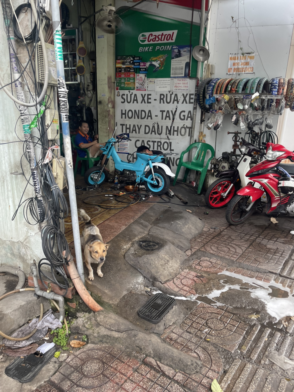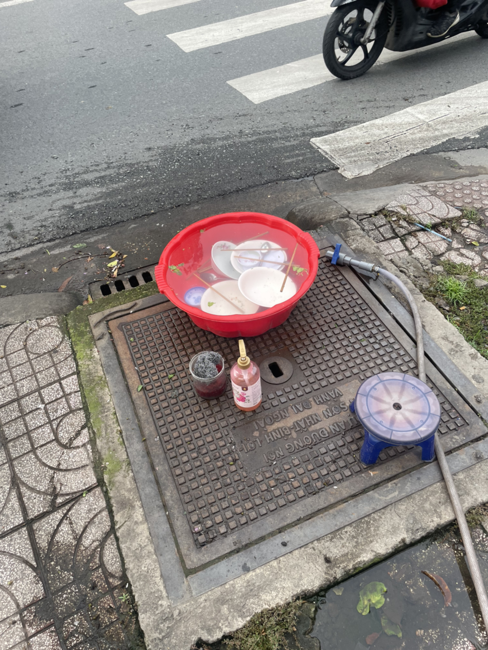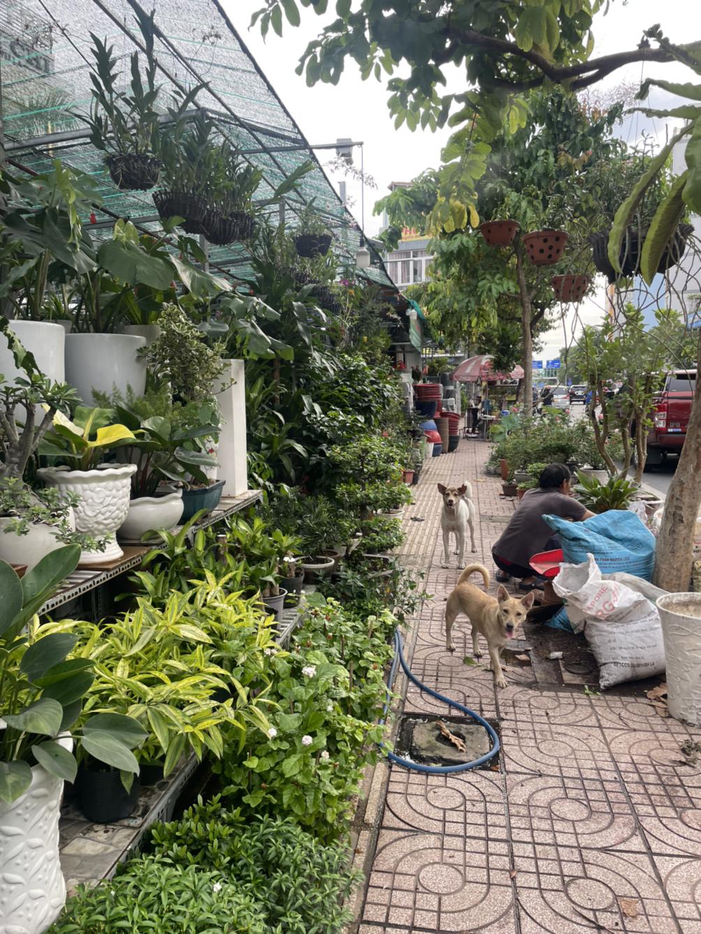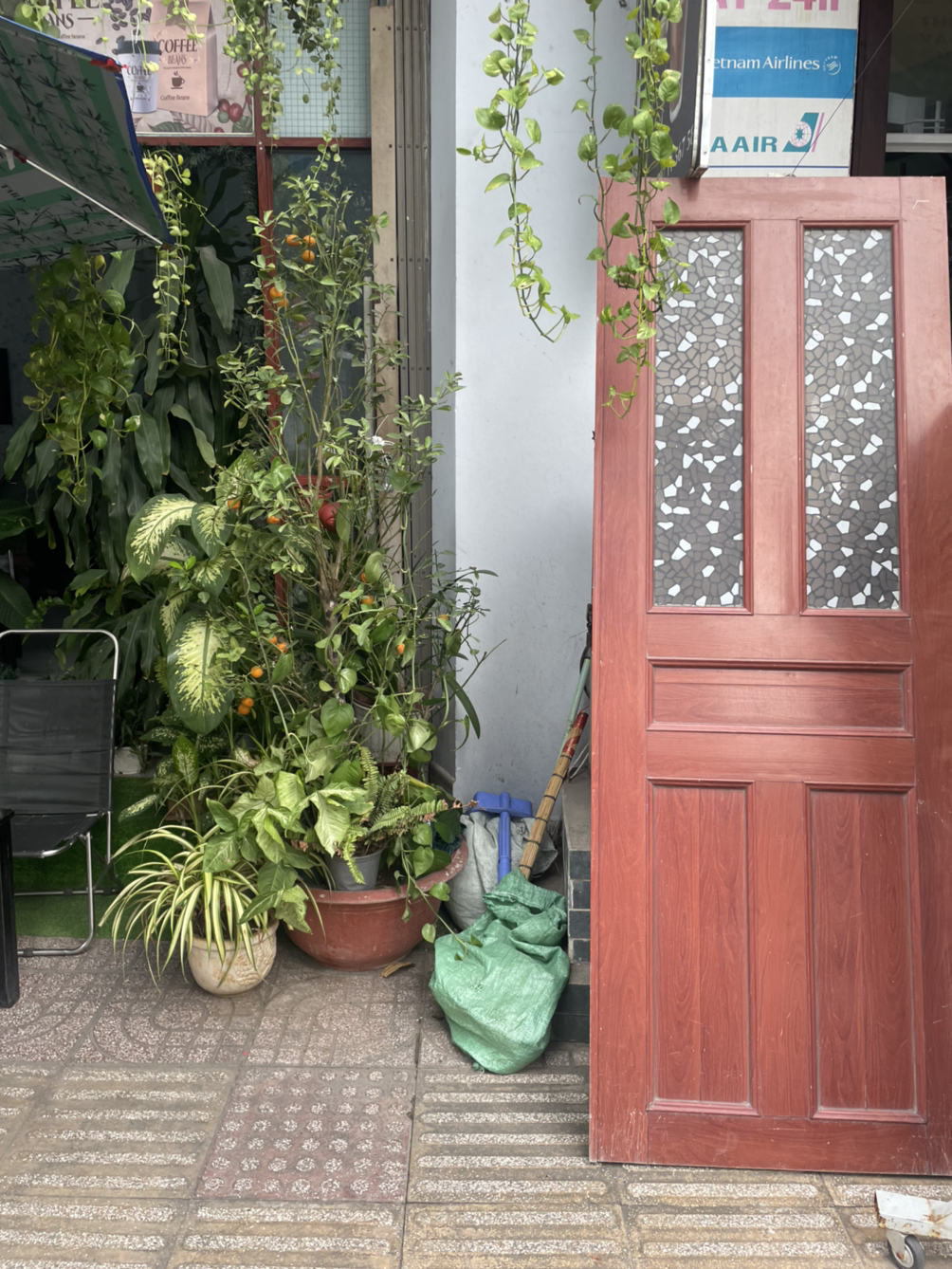 어쨌든 차도를 무단 횡단하고, 이어진 인도를 쭉 걸어서 코너를 도니까 내가 가려던 길이 나왔다. 구글맵은 이 길을 따라 쭉 가라고 한다. 길 따라 걸으며 주변을 둘러보았다. 'BALI COFFEE'라고 쓰인 카페와 '강남 Kang Nam'이라고 적힌 허름한 건물도 보였다. 도로 위 수많은 오토바이 행렬을 보면서 다시 깨닫는다. 동남아에 오기는 왔구나. 저녁으로 쌀국수를 먹고 싶었기 때문에 가던 길에 있는 식당과 카페를 눈여겨보았다. 공항 주변이라 먹을 데가 제법 있어 보였다. 길가에 보이는 가게에는 주로 몇몇의 현지인들이 앉아 있거나 주인이 혼자 앉아 있었지만.