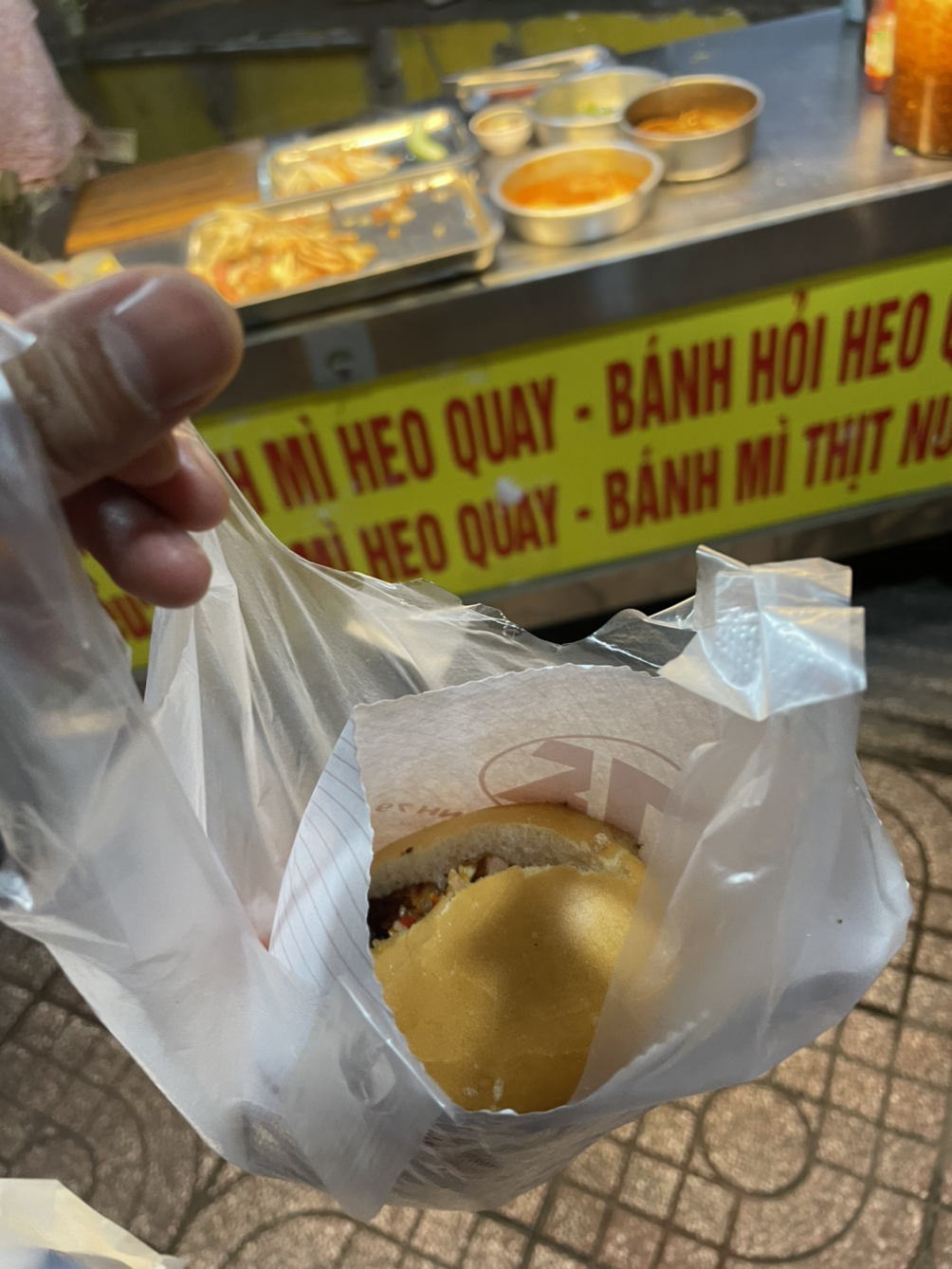 19시 22분, 미니스톱 편의점에 들러 주전부리를 샀다. 심심한 쌀국수 한 그릇에 아직 헛헛한 느낌이 들어서. 민초 아이스크림과 미니 오레오, 초코바, 요거트를 샀다. 길을 건너야 하는데 횡단보도가 멀어서 걸었다. 그러다 반미를 발견한 것이다. 길을 반쯤 건너다가 다시 돌아왔다. 그리고 반미를 주문했다. 내일 아침에 먹고 나가야지. 괜스레 마음이 신났다. 호찌민에서 아침식사로 먹는 반미. 그들도 아침에 반미를 먹겠지. 그들의 일상과 비슷해지는 느낌이 들었다. 물론, 아침을 먹자마자 공항으로, 공항에서 발리로 떠나겠지만.