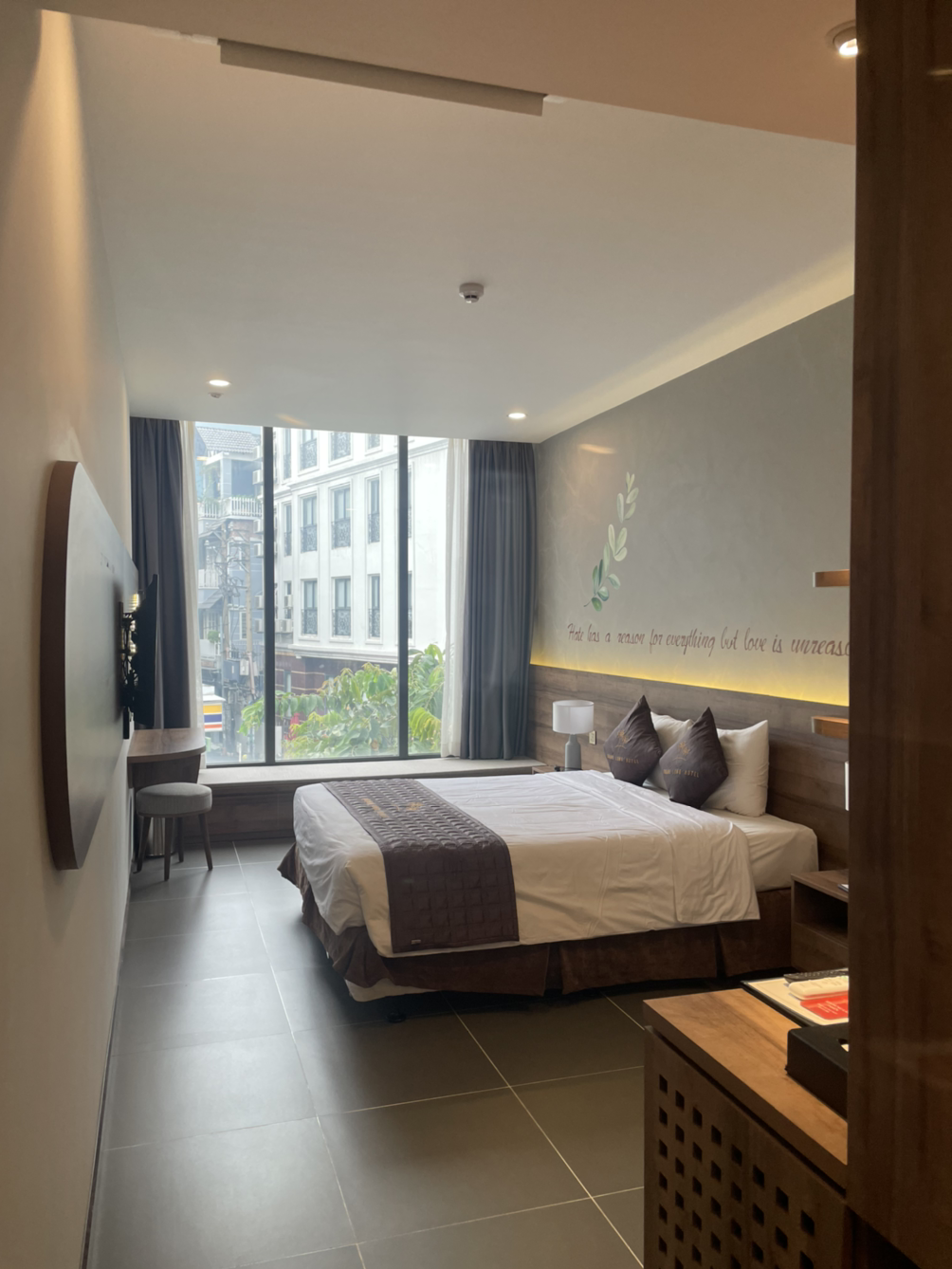 17시 15분, 어찌어찌 호텔에 도착했다. 얼굴과 몸에는 이미 땀으로 범벅이었다. 무거운 가방을 메고 걸었으니 얼른 내려놓고 싶었다. 카운터에 있던 안경을 쓴 여성은 벌떡 일어나 내게 인사를 했다. 20대 초반 정도로 어려 보였다. 오른쪽 팔에는 'Everything happens without reason.'가 새겨져 있었다. 그녀가 여권을 건네며 뭐라고 말했는데, 이미 지친 상태에서 주의 깊게 듣지 못했고, '블랙핑크'라는 말만 들었다. 그에게 물었다. "'깜언'은 어떻게 발음해?" 그가 "'Thank you' 말하는 거야?"라고 되물었다. "응, 너희 말로 'Thank you' 이거 어떻게 말해?"라고 대답하며 다시 물었다. "깸언" 정도로 들렸다. 나도 따라 말했다. 몇 번 더 말해주면서 그가 카드키를 건네준다. "굿, 퍼펙트"라고 말한다. 내가 생각하기에 매우 어색했지만, "깸언!"을 입 밖으로 내보냈다. 그에게 다시 물었다. "'씬짜오?' 이건 어떻게 발음해?" 그가 다시 되묻는다. "'Hello'를 말하는 거지?" "예아, 헬로우. 유어 랭귀지." 그가 웃으며 "씬-짜오" 한다. 나도 "씬짜오" 따라 말한다. 이건 성조가 없는 건가? 아무튼. 그를 보면서 "깸언!"을 외치며 돌아섰다.
