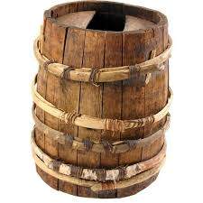 목재는 아무래도 오래 보관하다 보면 부패의 우려가 있고, 지금처럼 첨단 시설로 온도조절을 하기가 힘든 상황에서는 위 사진처럼 땅에 묻어서 자연 상태 그대로의 온도로 보관했는데요. 암포라는 샐 염려가 없는 것이 가장 큰 장점이었지만 아무래도 운송을 할 일이 잦아지면서 가볍고 깨질 위험이 덜한 나무 소재를 시도하기 시작했습니다. 소량이나 이동 중에 마실 경우에는 가죽 부대를 사용하기도 했으나, 대용량을 운반하기에는 가죽 소재로는 무리였지요. 메소포타미아 시대 때는 야자나무를 사용했다고 합니다. 야자나무로 본체를 만들고 야자나무 줄기를 짓이겨 밧줄처럼 꼬아서 본체를 감쌌지요. 아래 사진이 가장 유사한 모습일 거 같네요. (사진출처: https://www.cdiscount.com/maison/decoration-accessoires/sticker-mural-tonneau-dimensions-50x70cm/f-117634905-auc3663439005960.html)