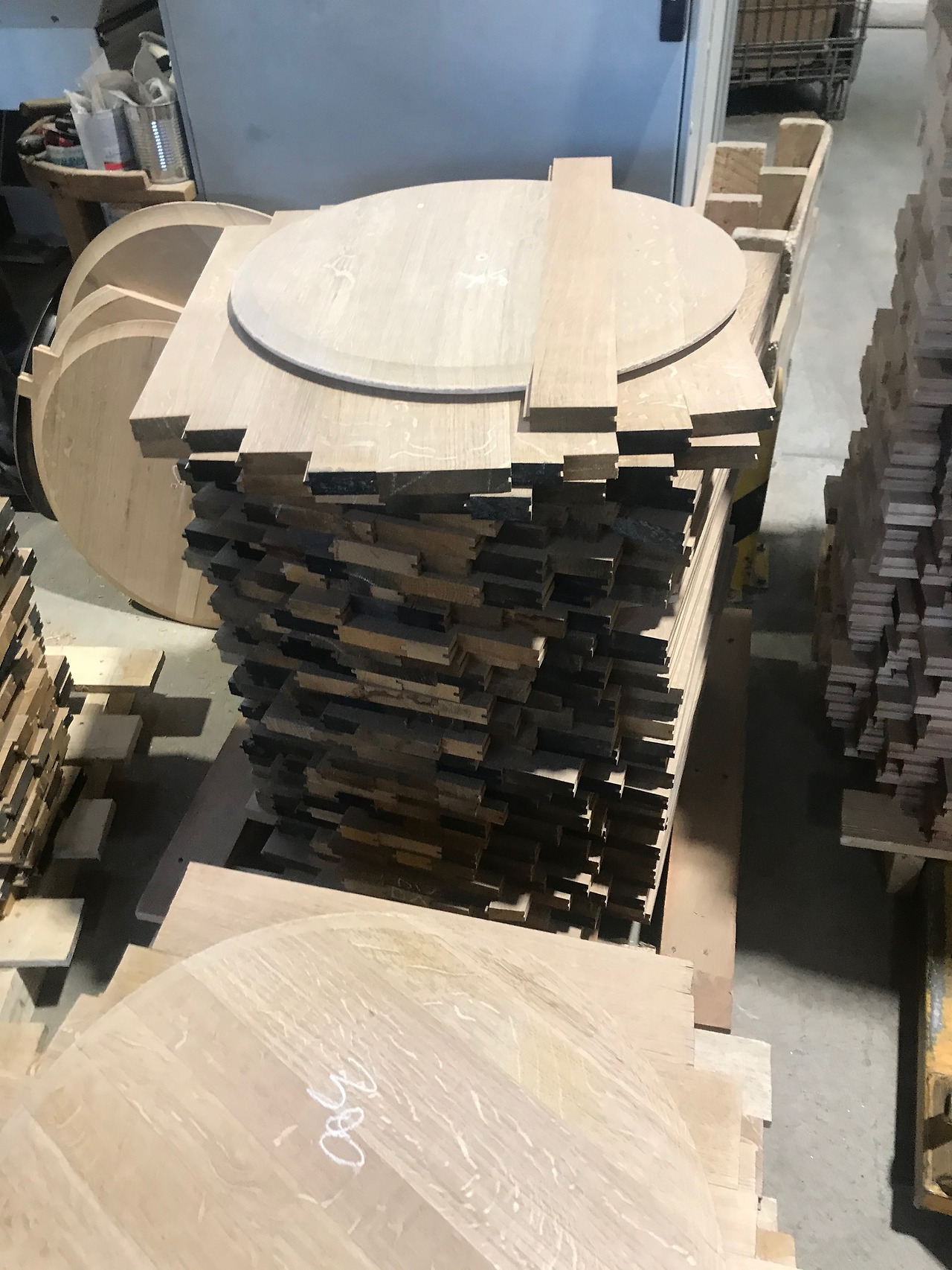 먼저 오크통 제작하는 곳에 가보면, 아래 사진처럼 참나무 조각들이 쌓여 있습니다.
