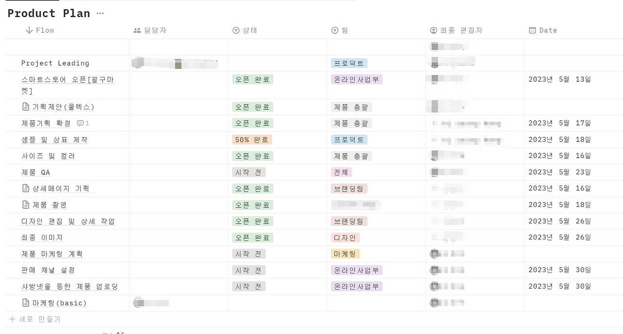 당시 처음 만들어본 스마트스토어 기획 일부, 노션