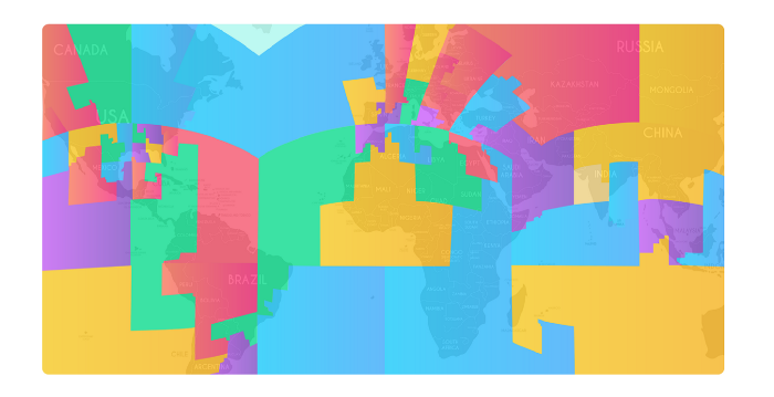 하나의 간단한 접근 방식은 세계 지도를 위도와 경도를 활용하여 균등하게 간격을 나누어 그리드로 구성하는 것이다.
