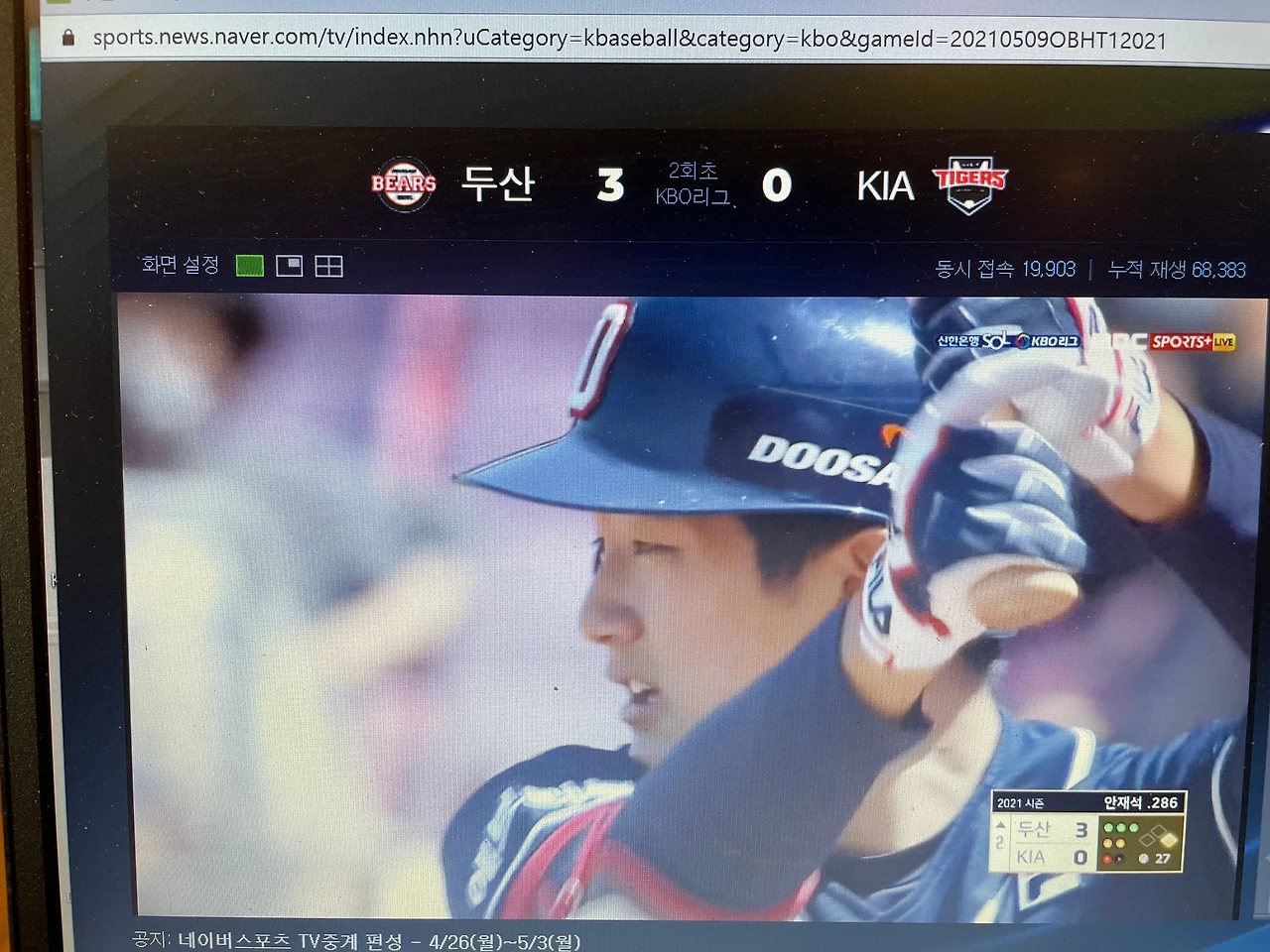두산 3:3 kia