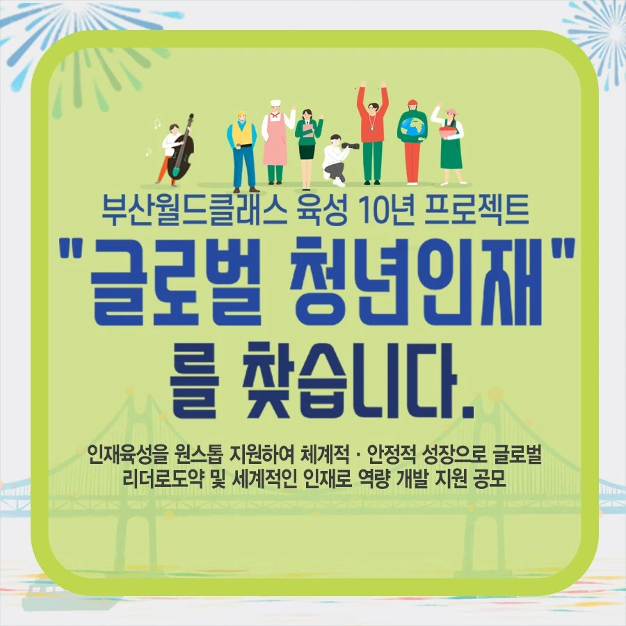 #부산월드클래스 #부산 #부산행사 #부산사업 #공모 #인재육성 #지원금 #코로나19극복 #자기개발 #서포터즈 #부산월드클래스서포터즈 #홍보 #건축 #조리 #디자인 #음악 #무용 #미술 #연극 #영화 #사진 #언론 #과학 #기술 #경제