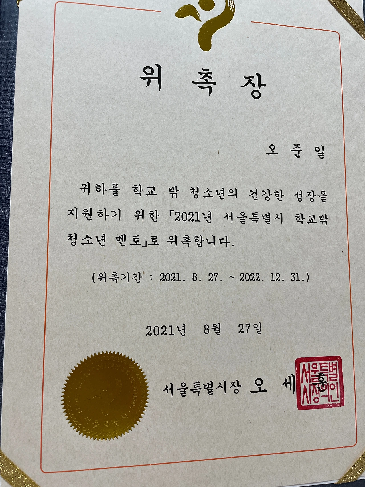 9/1(Wed) 서울시 학교밖 청소년 멘토 위촉
