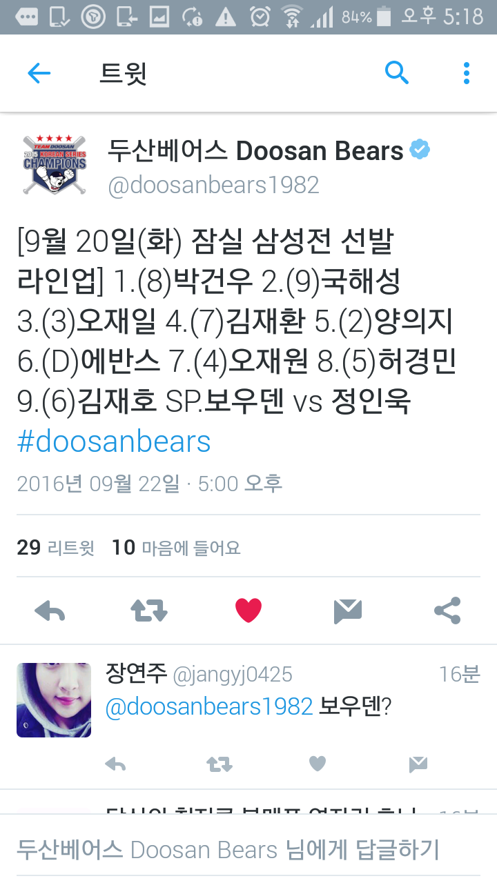 이후 군 전역후 1군 복귀하는 이용찬, 이원석선수와 이미 마무리로 활약하는 홍상삼의 호투는 올 가을야구를 재미있게