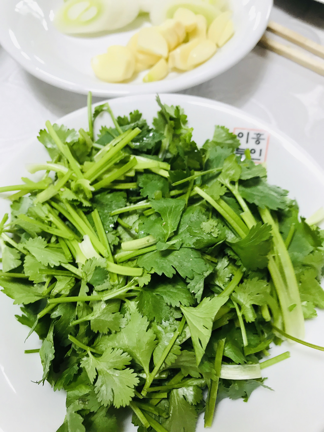 양배추와 파를 올려서 먹으면
