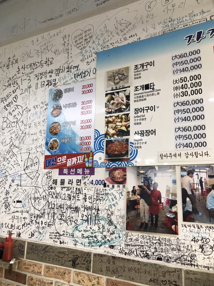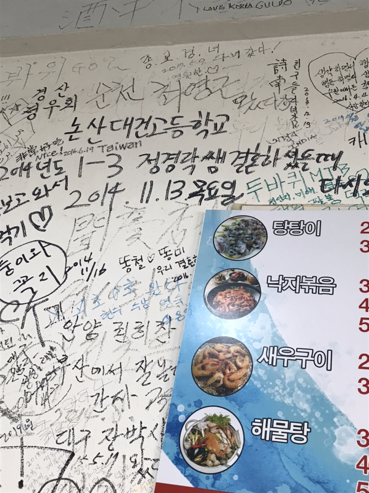 벽에 글씨들이 많아요