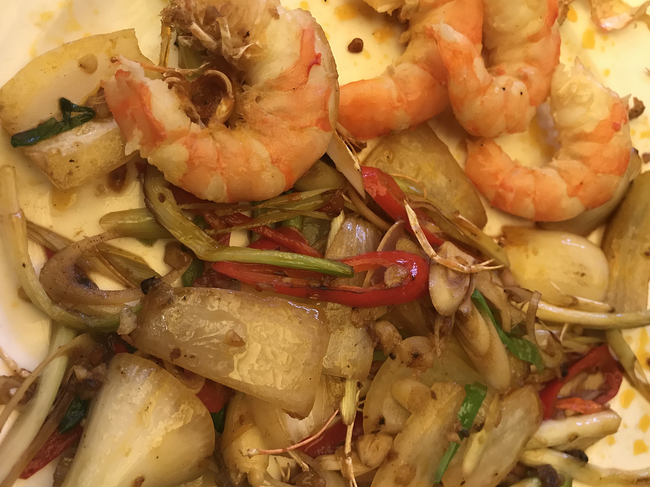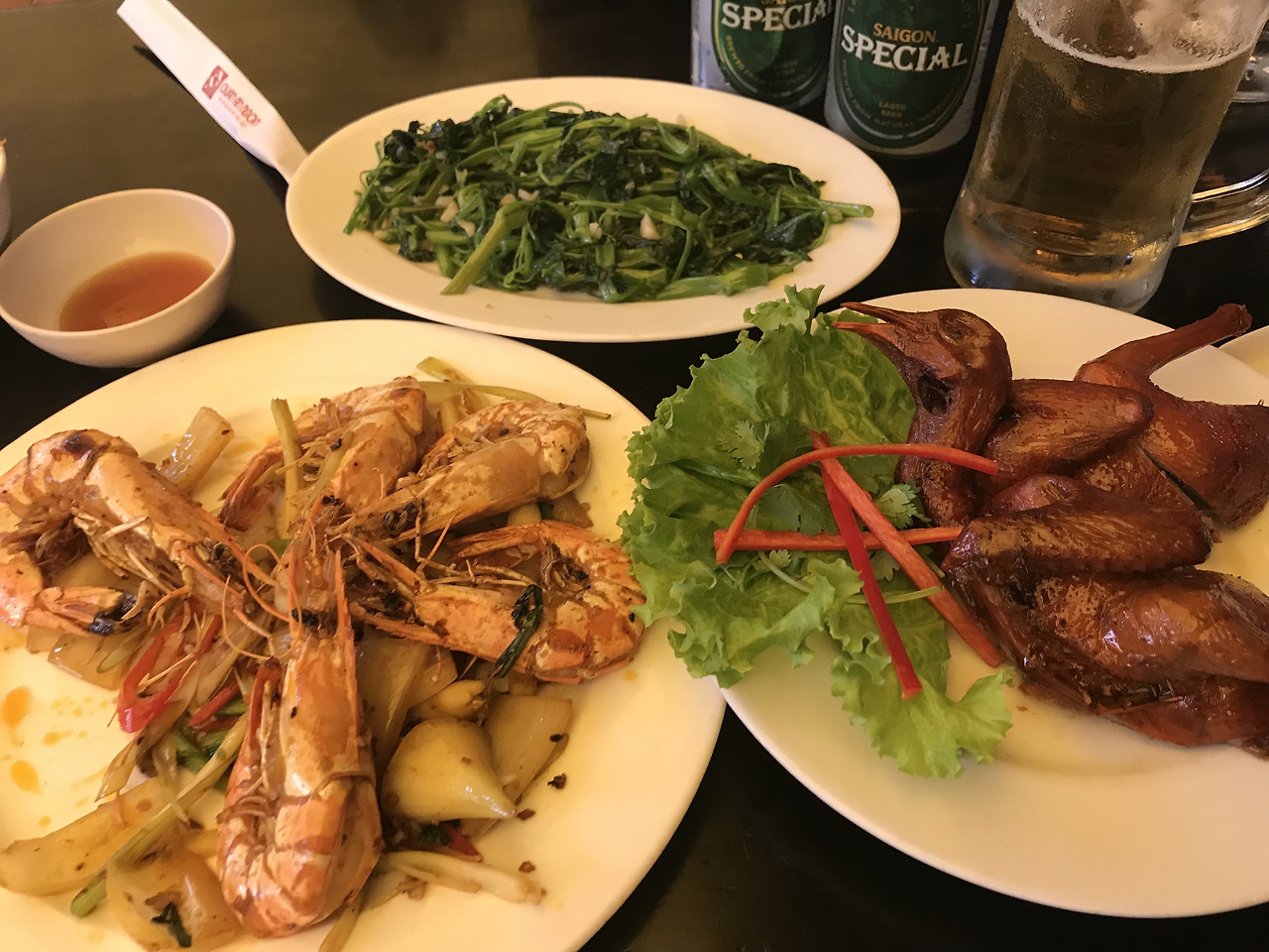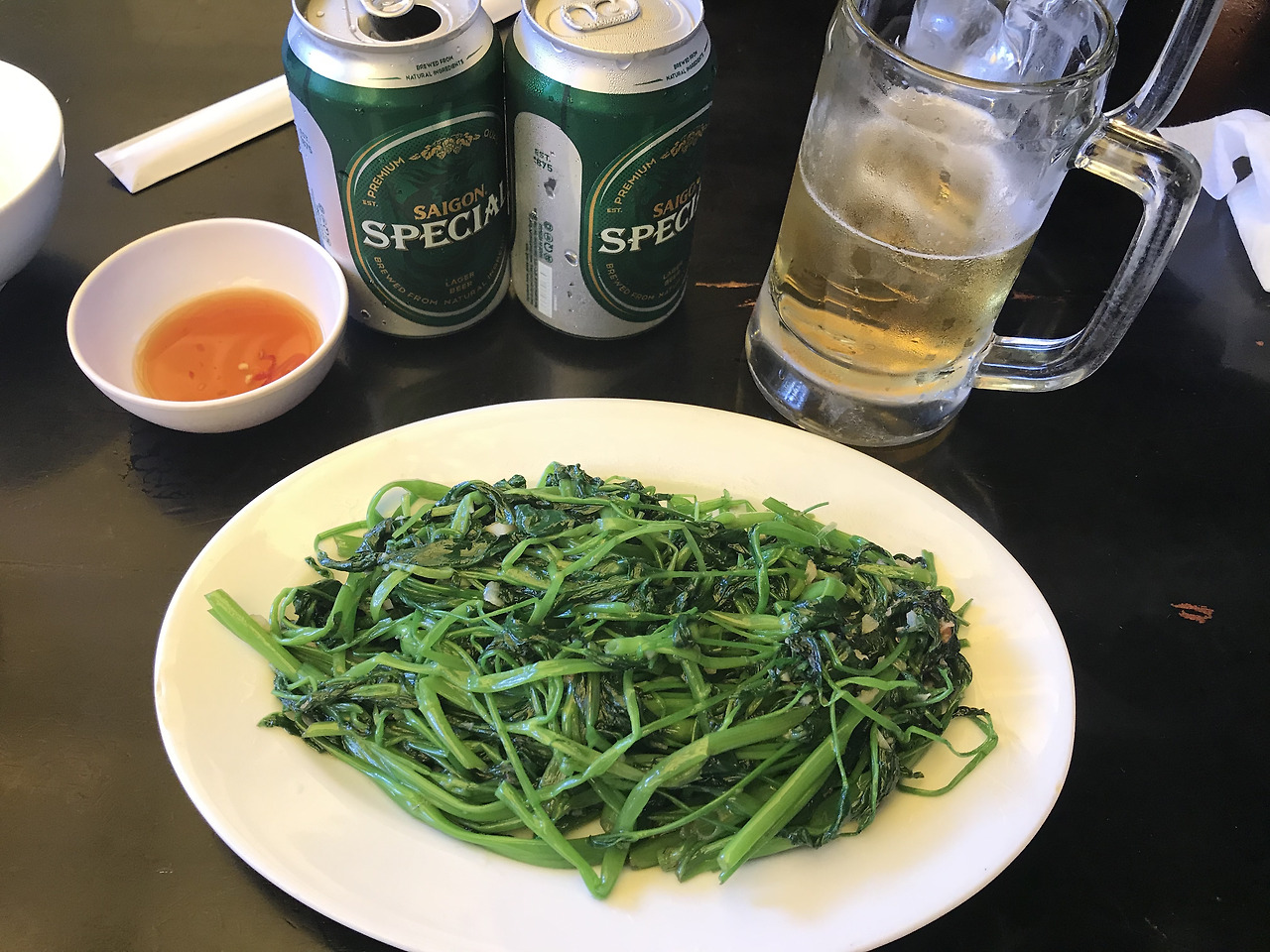 모닝글로리 볶음과 새우볶음을 주문했어요