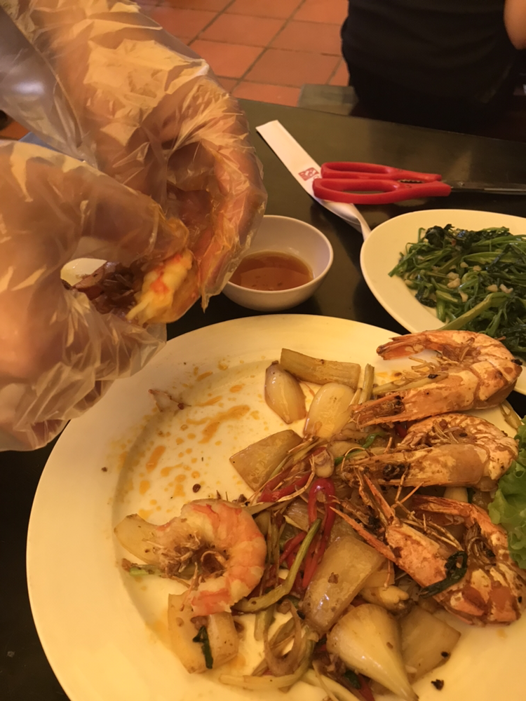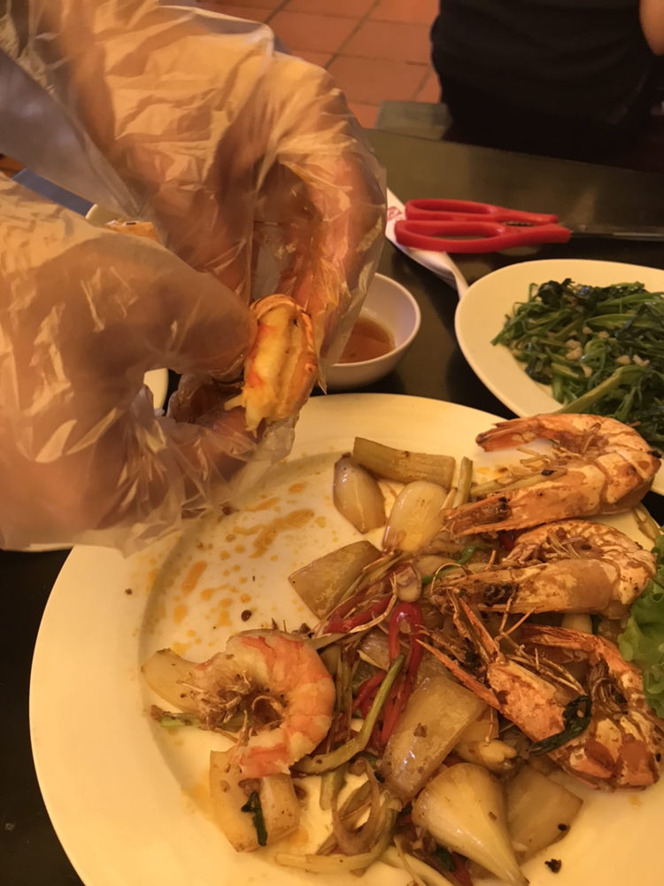 종업원이 새우를 손질을 해줘요