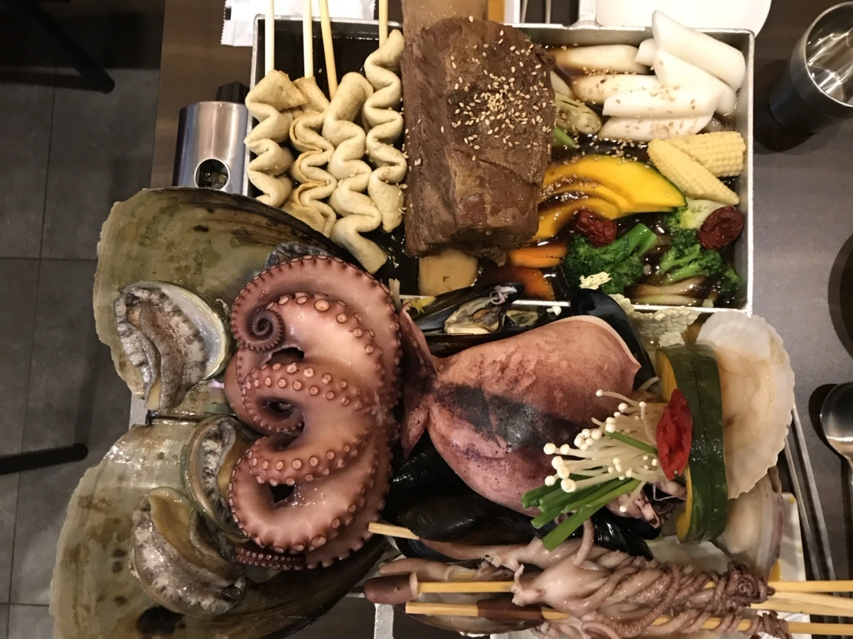 조개 , 문어, 갈비, 낙지, 버섯, 밀푀유나베, 오뎅콤보