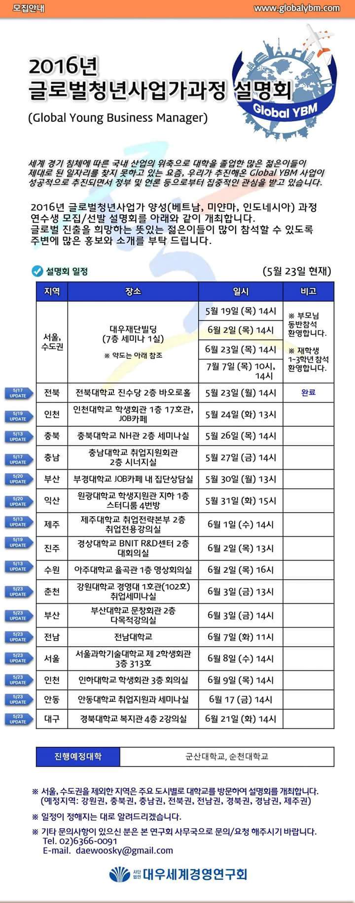 2016 글로벌청년사업가 양성과정 설명회 일정