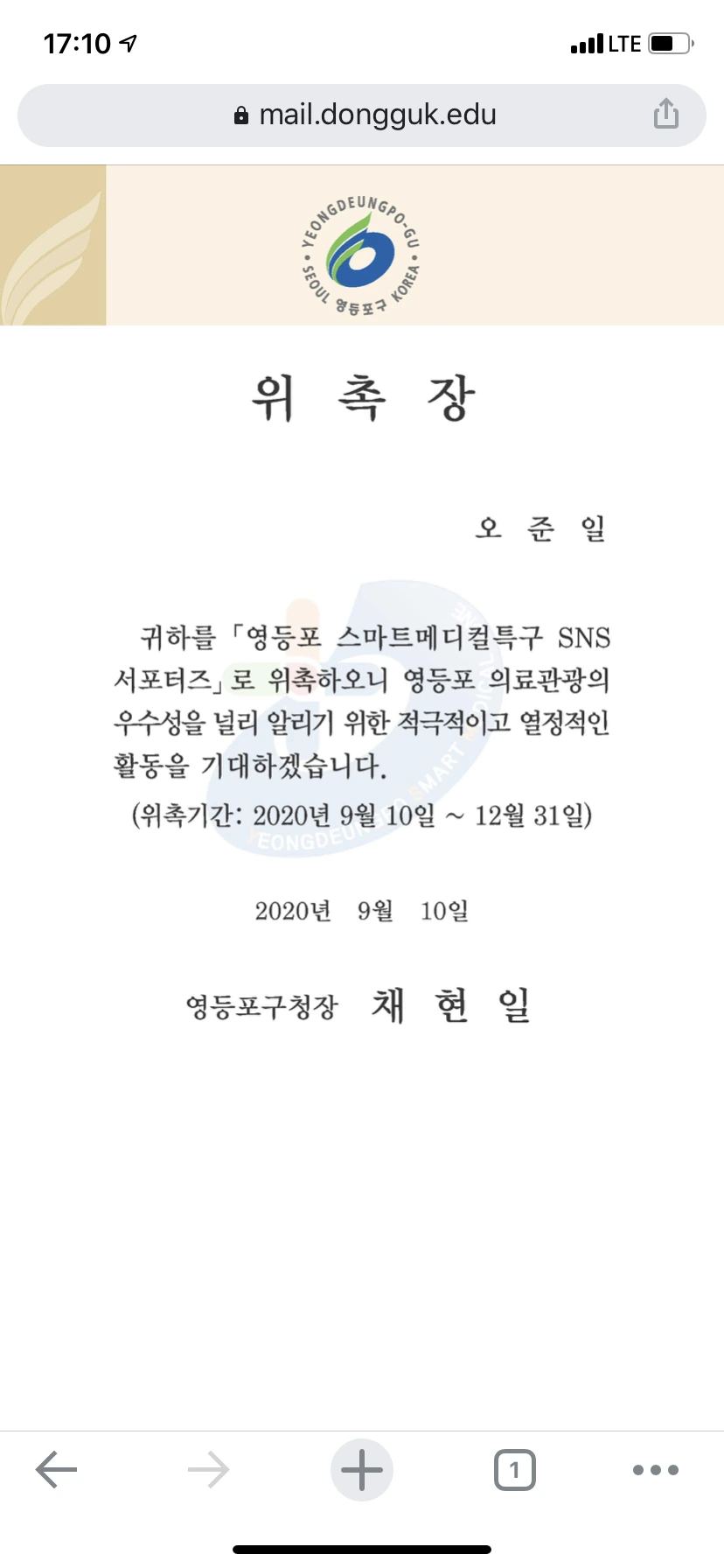 채현일 영등포구청장의 환영사와
