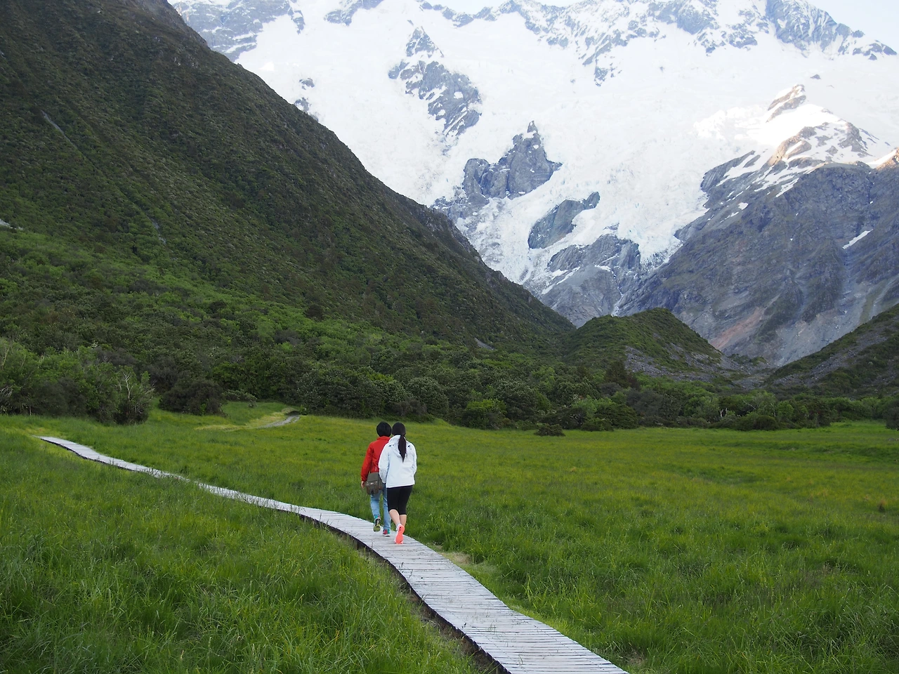 산정상에 녹지않은 하얀 눈들이 가깝게 보이는가 싶었는데 “ 두두두두두 …” 라는 엄청난 천둥소리가 산 정상쪽에서 들려왔다. 눈이 녹으면서 무너지는 눈사태 , Avalanche 소리. 이 소리 들어보기가 쉽지않은데 처음 들어보는 막내는 너무나 신기해 하고 좋이한다. 역시 나의 이 탁월한 장소 선택 ㅎ