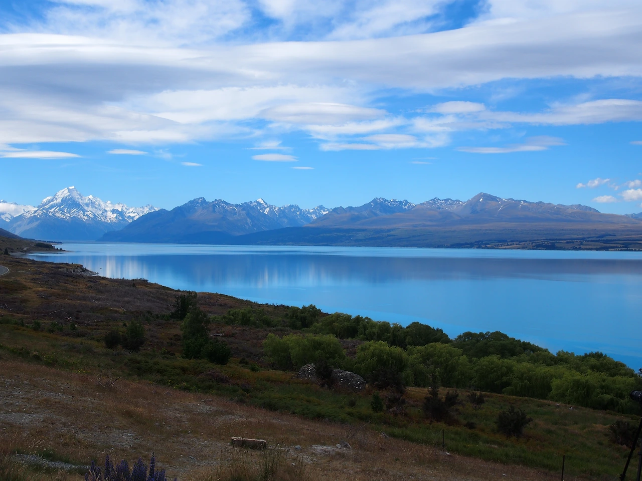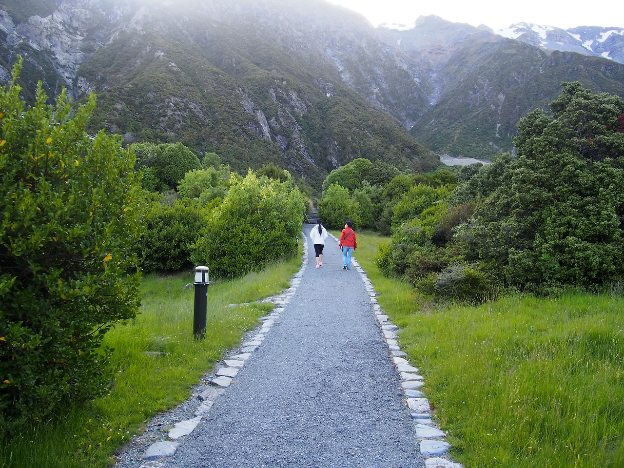 시원한 푸른 하늘 과 산 정상에 여전히 쌓여있는 흰 눈 그리고 싱싱한 풀 과 나무들 이름모를 새 소리가 사방에서 들려온다.