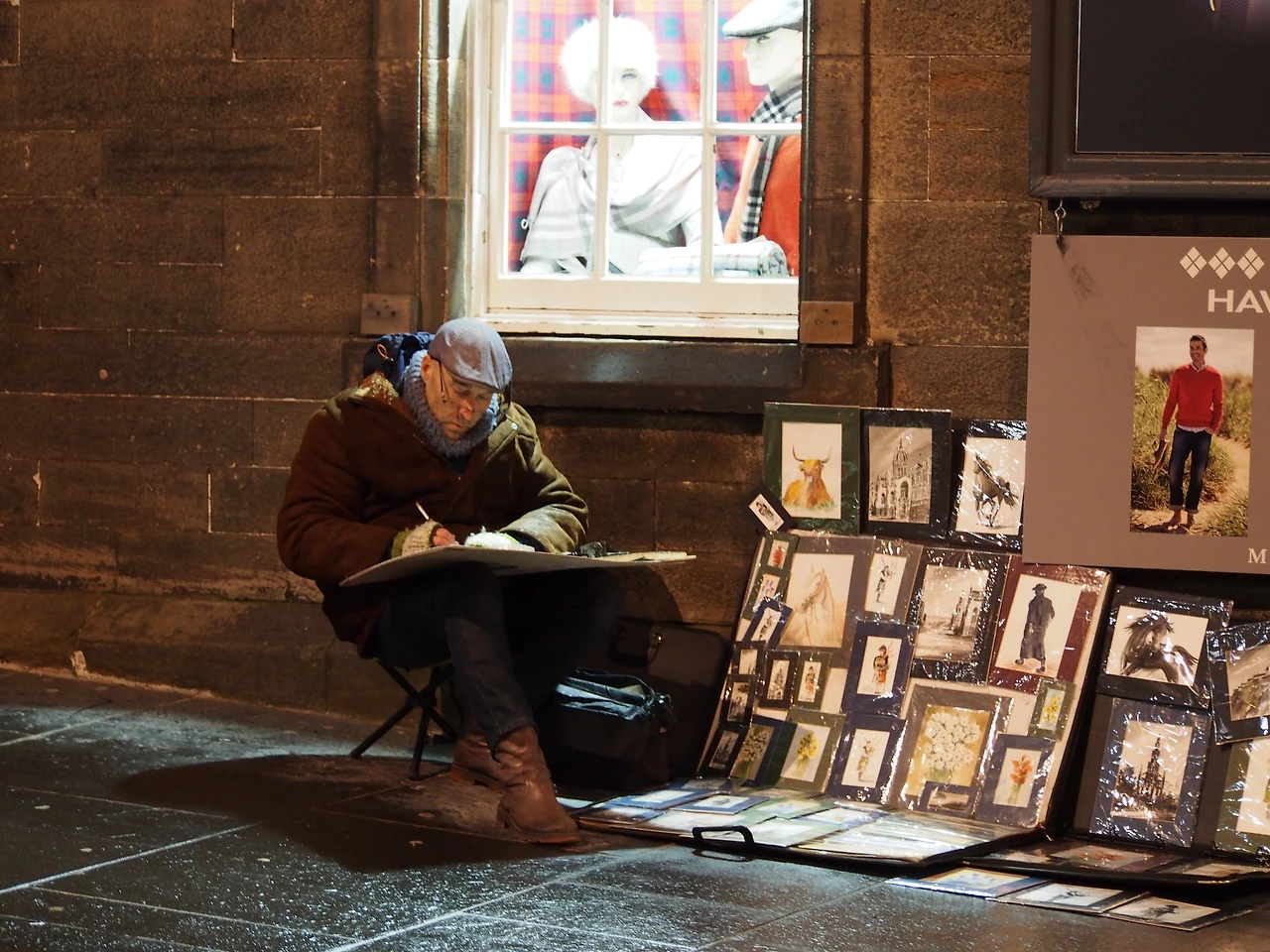 세찬 비바람에 서둘어 나오는데 성밖으로 나오는 그 길목에 길거리 화가가 앉아 있다
