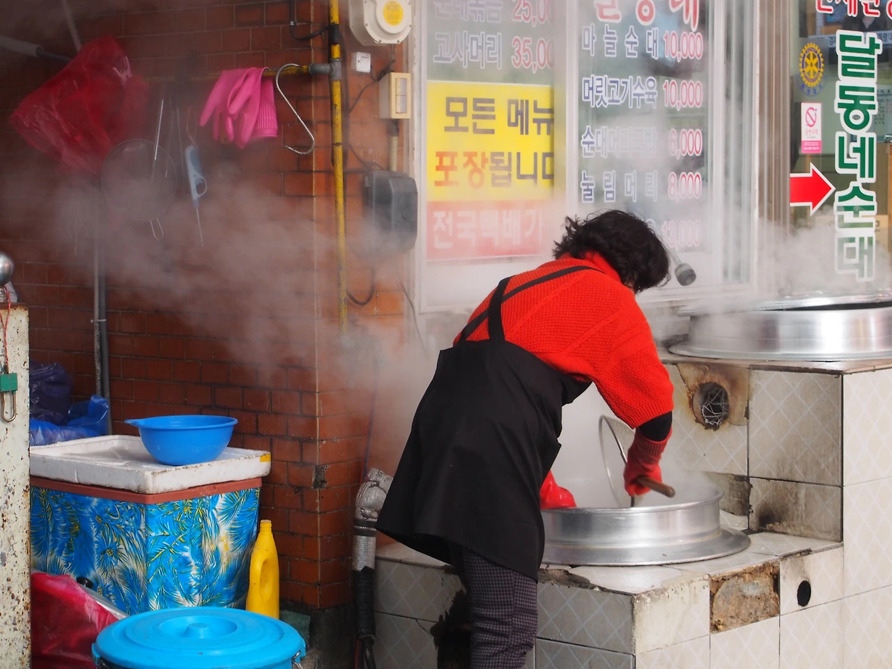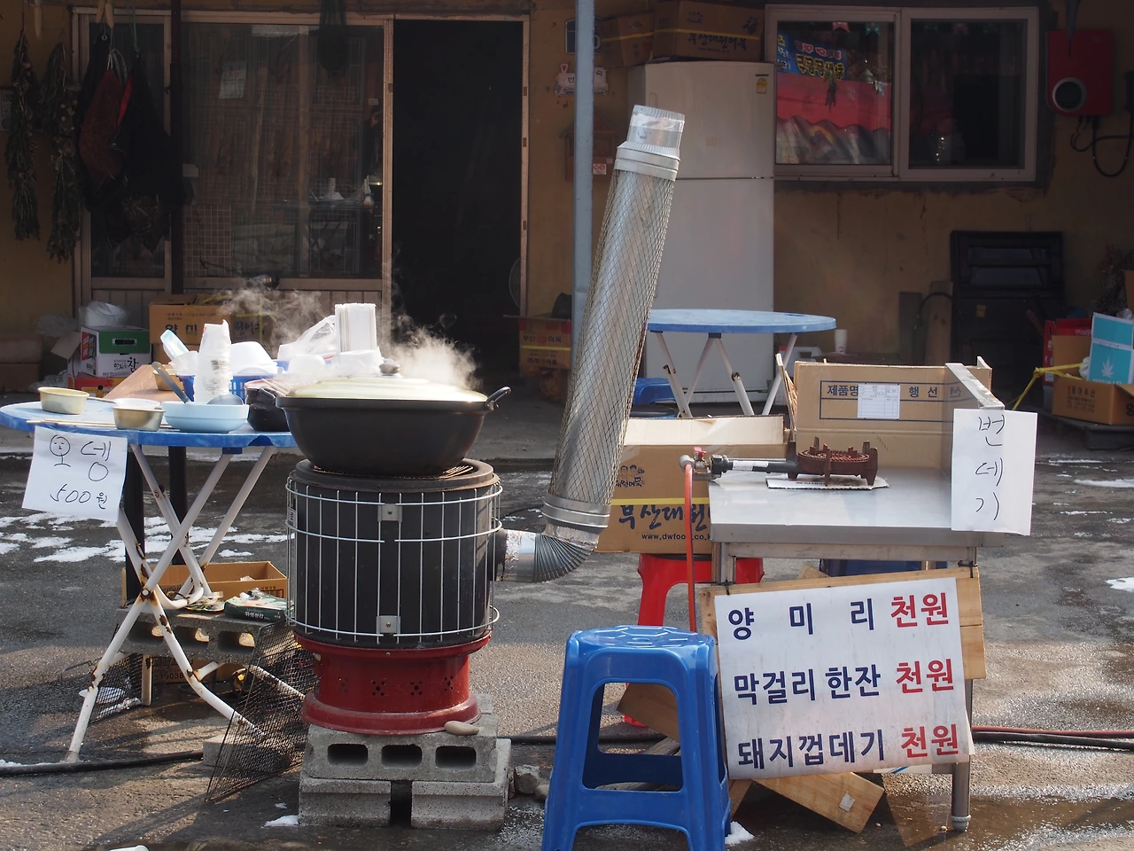 단양시장 길거리에서 불켜진 순대국밥집을 발견.