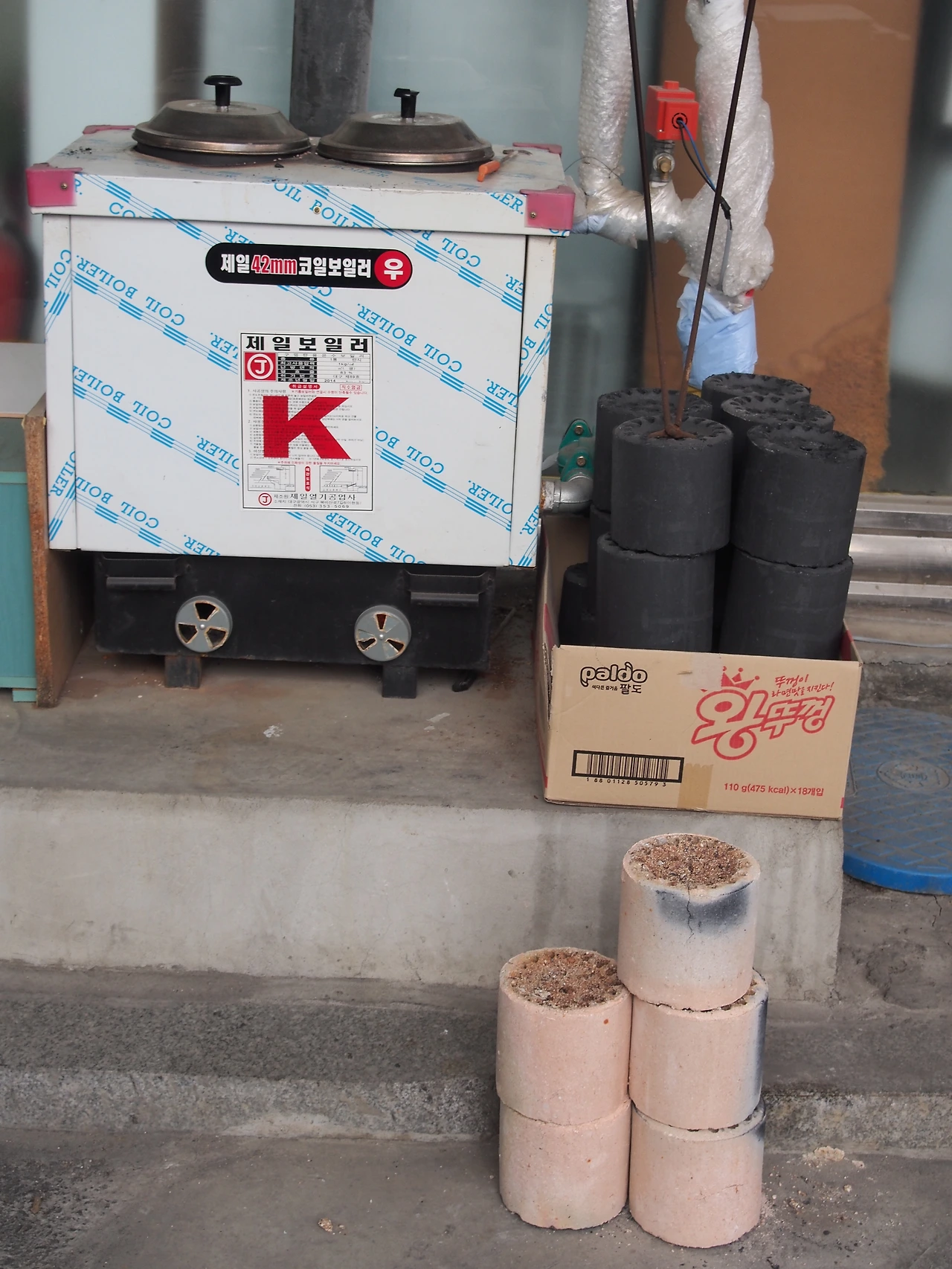 주인이 손님을 기다린게 아니라 산더미같은 마늘 까는 작업을 느라 불을 켠 상태이다.