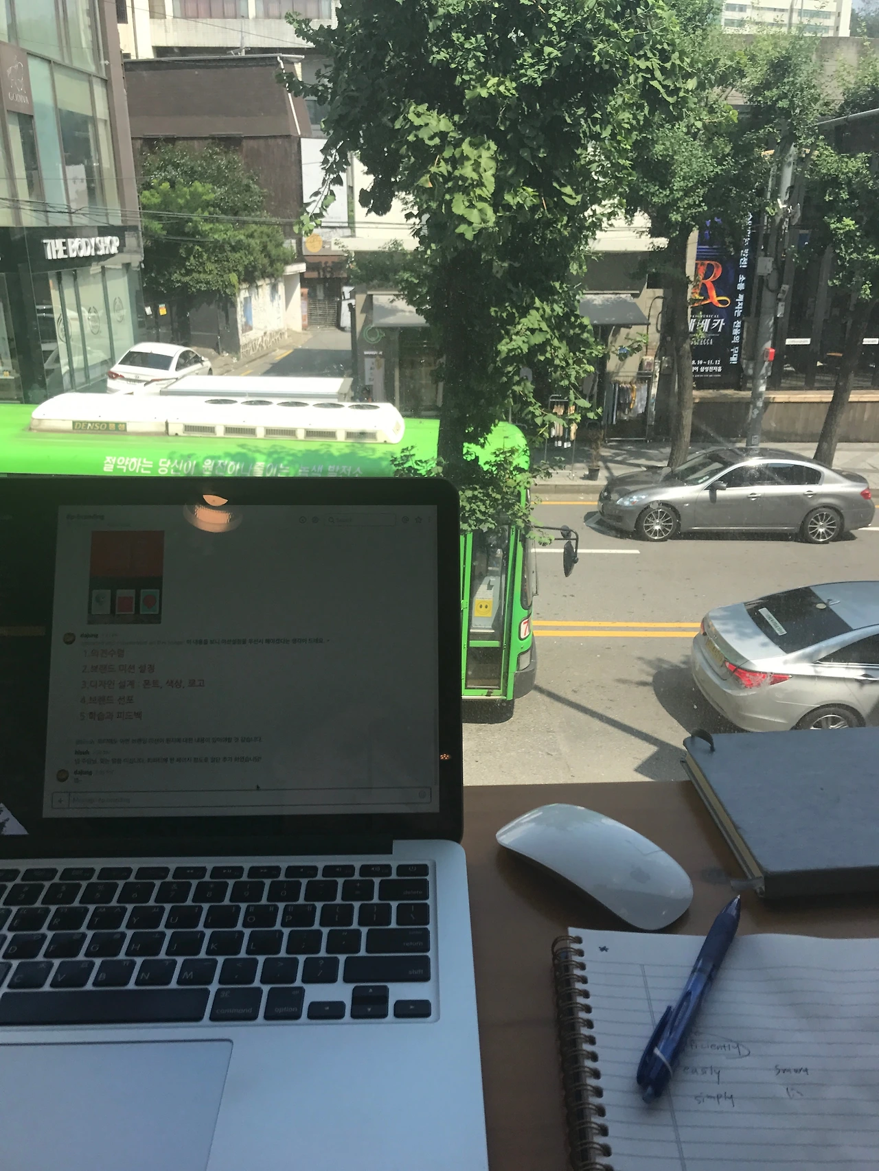 처음부터 '리모트'를 하려고 한건 아니었다. 원래는 정말로 강릉에 가서 살려고 했다. 치앙마이, 뉴욕에서도 한 달 사는데 강릉에서 한 달 사는 건 그에 비하면 엄청난 용기가 필요한 건 아니라고 생각했다. 그런데 용기는 필요 없어도 돈은 필요했다. 원룸을 찾아보니 생각보다 지방이라고 해서 저렴하진 않았다. 보증금 제외한 월세 자체는 서울과 거의 비슷했다. 그리고 강릉은 버스 배차가 적고(대신 택시는 정말 잘 잡힌다)노선이 많지 않아서 차가 없는 나에겐 불리했다. 마트 같은 데 가려면 무조건 차를 타고 나가야 되는 데 매번 택시를 탈 수도 없었다. 언덕도 차도 별로 없어서 운전하긴 정말 좋은데 지금 생각하니 다음에 기회가 된다면 면허를 따서 바이크를 타는 것도 괜찮은 선택일 것 같다. 현실적인 문제로 리모트 워킹으로 타협을 봤지만 그래도 한 달에 한두 번은 꼭 강릉에 갔다.
