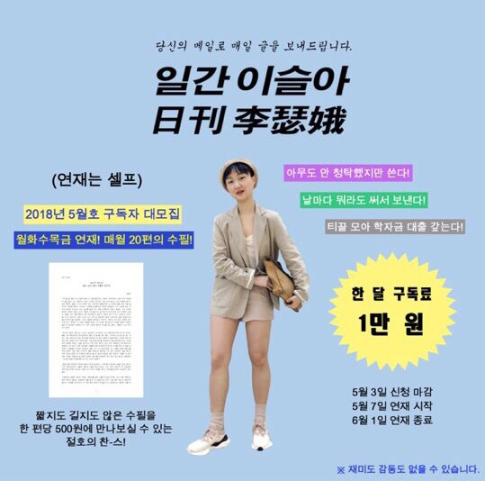 개인 창작자인 이슬아 작가님의 '일간 이슬아'였는데요.