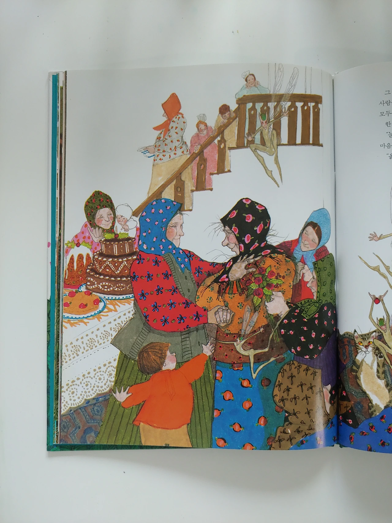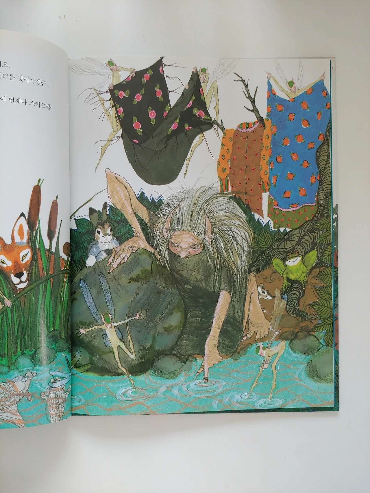마지막 장면을 볼까, “사람은 겉모습만 보고 판단해서는 안 돼. 마음이 중요한 거야.” 모두가 웃고 있네. 하지만 나는 이 장면이 조금 슬퍼. 할머니의 뾰족한 귀는 처음부터 없었던 것처럼 스카프 속에 숨어서 숨죽여야 하지. 몸에 깊이 밴 숲 냄새를 지우기 위해 깊은 밤 남몰래 씻고 또 씻어야 했을지도 몰라.