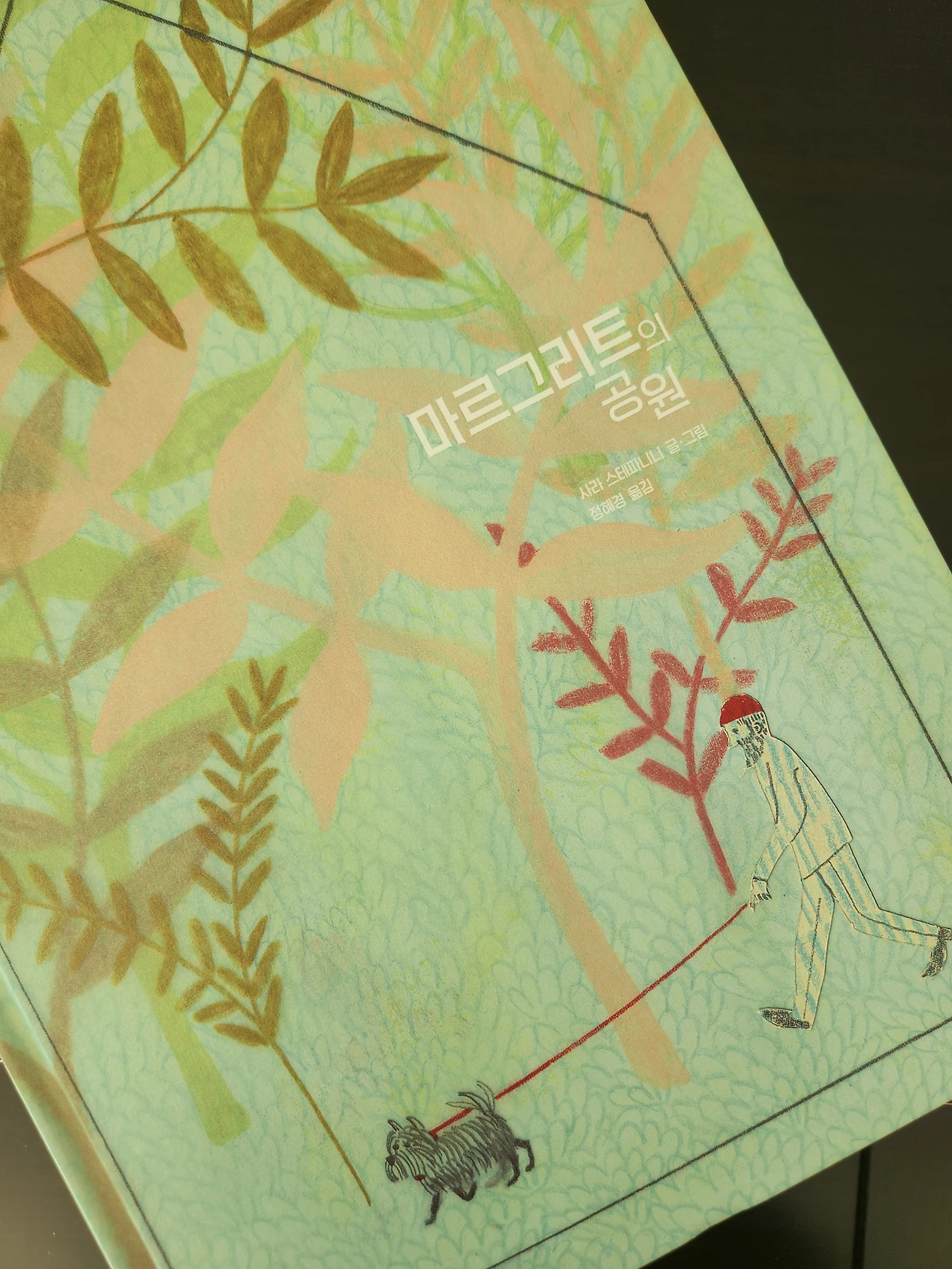 이쯤에서 d와 저처럼, 한 장소를 같이 사랑하는 어린이와 어른이 나오는 그림책을 소개할게요. 오늘 아침 기온은 영하 10도, 완전한 겨울이에요. 이런 겨울에는 붕어빵의 온기와 연둣빛 계절의 기운이 필요하죠. 처음부터 끝까지 초록이 가득한 배경이지만 그래서 겨울에 더 잘 어울리는 책, 사라 스테파니니가 쓰고 그린 <마르그리트의 공원>입니다.