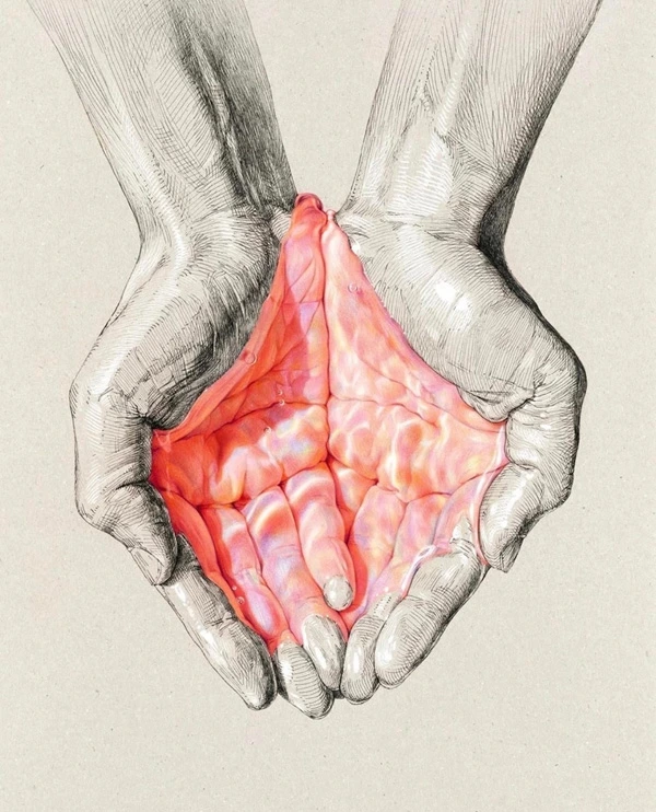 집으로 돌아와 옷을 갈아입던 중, 헤어진 무당벌레가 생각났다. 녀석이 타고 오르던 앞섶을 따라 손가락을 더듬거렸다. 그 방향이 심장을 향하고 있었다. 구부린 손가락을 가지런히 펴 왼쪽 가슴에 올려두고는 눈을 감았다. 쿵쾅거리는 불규칙한 박동이 느껴졌다. 살과 뼈 아래서 힘차게 솟구치고 있을 동맥혈을 그려보았다.