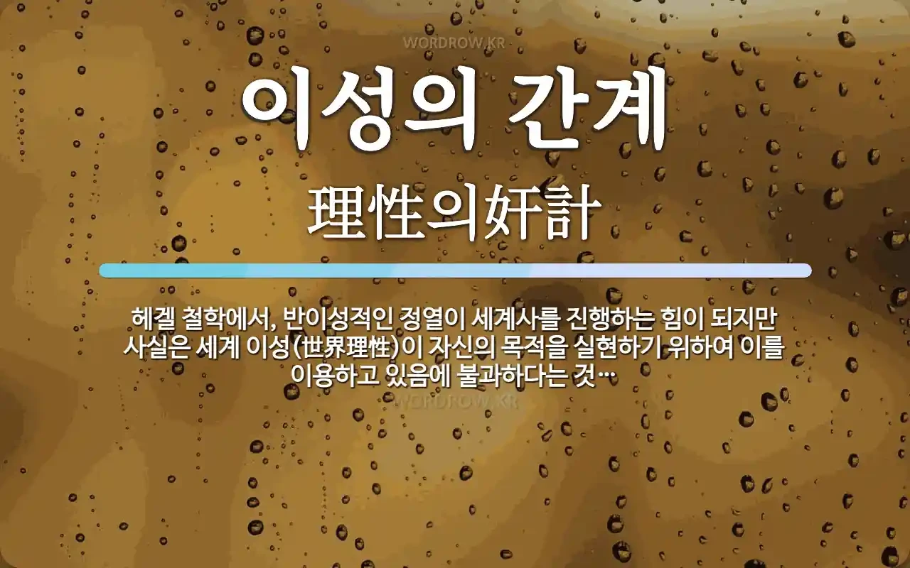 세계정신의 합리적인 목적에 관해서 헤겔은 “사람들이 자신들의 욕망을 충족시킬 때, 세계정신의 합리적인 목적과는 다른 의도를 가지고 있지만, 바로 그러한 행위를 통해서 그 같은 목적을 실현한다.”고 말한다(헤겔의 《법철학》). 애덤 스미스의 ‘보이지 않는 손’에 해당하는 것이 그 유명한 헤겔의 ‘이성의 간계’이다.