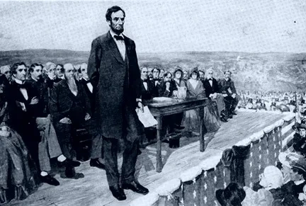 87년 전 우리의 조상은 이 대륙에 자유로 표현되는, 그리고 모든 인간은 평등하게 태어났다는 명제에 바쳐진 하나의 새로운 국가를 건설했습니다. (링컨 게티즈버그 연설 중)