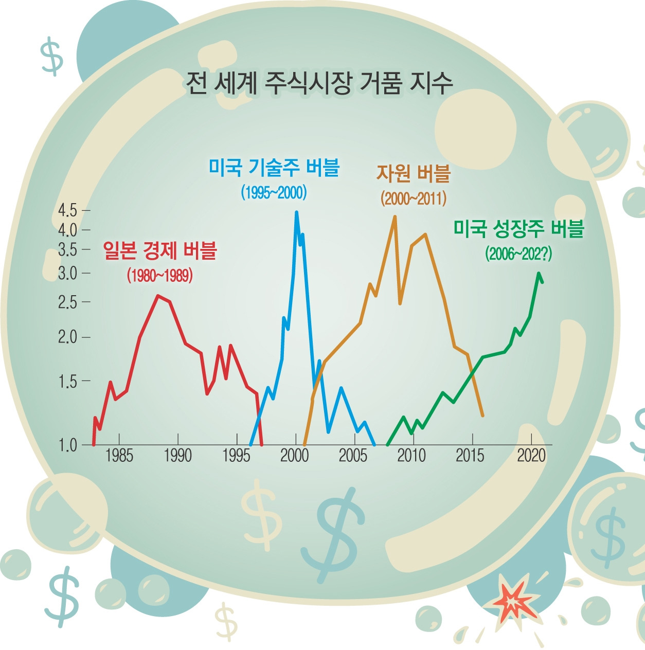 1960년대 이후 여섯 차례의 주식시장 버블에서 가장 두드러진 추세는 기술 관련 주식이 차지하는 역할이 점점 커지고 있다는 점이다. 주식시장 버블은 1996~2000년 악명 높은 닷컴 버블에서 절정에 이르렀는데, 이는 사상 최악의 기술산업 버블이다.