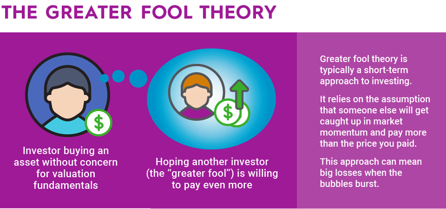 투기 광풍에서 흔히 나타나는 또 하나의 착각은 바로 ‘더 바보 이론(The Greater Fool Theory)’이다. 투기 광풍이 불 때마다 독자적이고 회의적인 사람들은 희열에 도취되지 않았다. 이들은 가격이 터무니없이 올랐으며, 대중이 광기에 사로잡혔다고 생각했다. 또한 이들은 상황이 걷잡을 수 없이 더 미쳐 돌아갈 것이라고 생각했다.