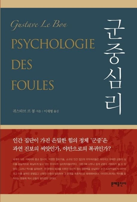 “어느 한 집단에 속한 모든 사람의 감정과 생각은 하나의 동일한 방향으로 향한다. … 집단의식이 형성되는 것이다. … 이렇게 형성된 집단의식은 매우 명확한 특징을 보인다. 그리하여 집단은 하나의 심리적 군중이 된다.”