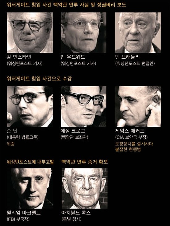 워터게이트 사건이란 닉슨 대통령의 재선을 획책하던 비밀공작반이 당시 민주당 전국위원회 본부인 워터게이트 건물에 불법침입해 도청장치를 설치하려다 발각된 사건이다.