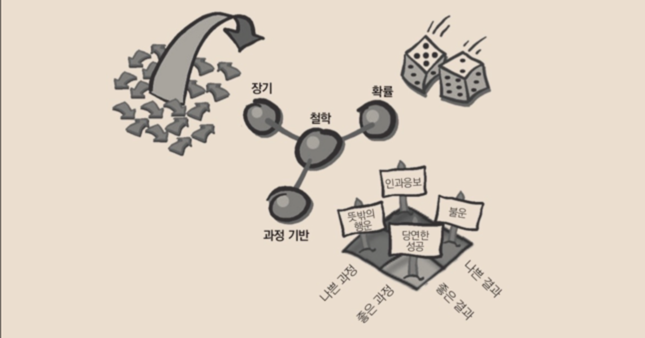 가끔은 확률적으로 좋은 결정이 나쁜 결과로 이어질 수도 있고, 나쁜 결정이 좋은 결과로 이어질 수도 있다. 그러나 길게 보면 과정이 결과를 압도한다. 결국은 카지노 하우스가 돈을 버는 이유가 이것이다.