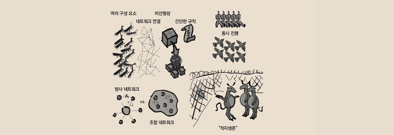 하지만 복잡계에서는 이런 간단한 계산이 허용되지 않는다. 복잡계란 자기 조직 임계 현상 상태에 있는 시스템이라고 표현할 수 있다. ‘자기 조직’이란 리더가 없다는 의미다. 복잡계는 개별 구성 요소의 상호 작용으로 작동된다. ‘임계성’은 비선형적이라는 의미다. 시스템에서 발생하는 진동(원인)의 크기는 결과와 항상 비례하는 것이 아니다. 작은 진동이 엄청나게 큰 결과를 불러올 수도 있고, 그 반대일 수도 있다.