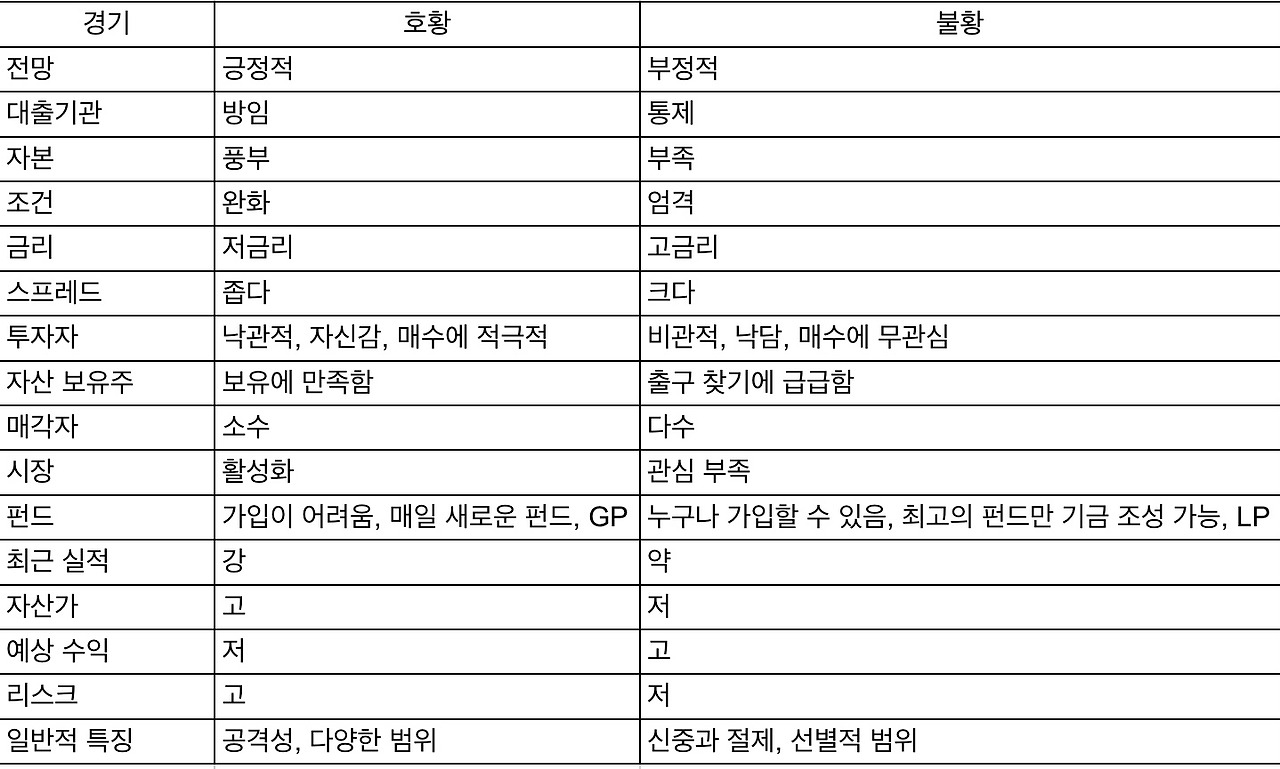 저가 매수의 기회가 존재하기 위해 필요한 조건은 자산에 대한 투자자들의 인식이 실제보다 훨씬 나빠야 한다. 최고의 기회는 대부분의 다른 사람들이 찾지 않는 것들 중에서 찾을 수 있다.
