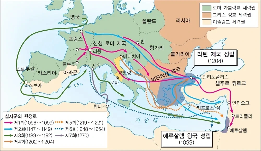 그러던 차, 예루살렘이라는 ‘신의 땅’을 되찾기 위한 노력의 일환으로 1096년부터 200년이나 계속된 십자군 원정을 통한 '다른 세계'와의 만남이 유럽에 가져다 준 충격은 어마어마한 것이었다. 고대 그리스 수학, 과학기술의 유럽세계로의 유입과 향신료 등 유럽과 동방의 교역이 늘어나기 시작했다.