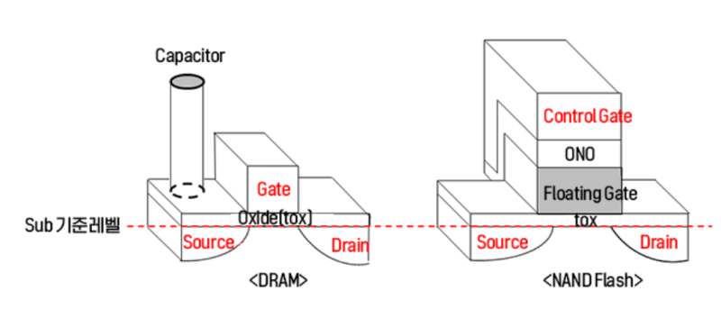 [D램과 낸드플래시 메모리 차이 출처 구글 이미지]