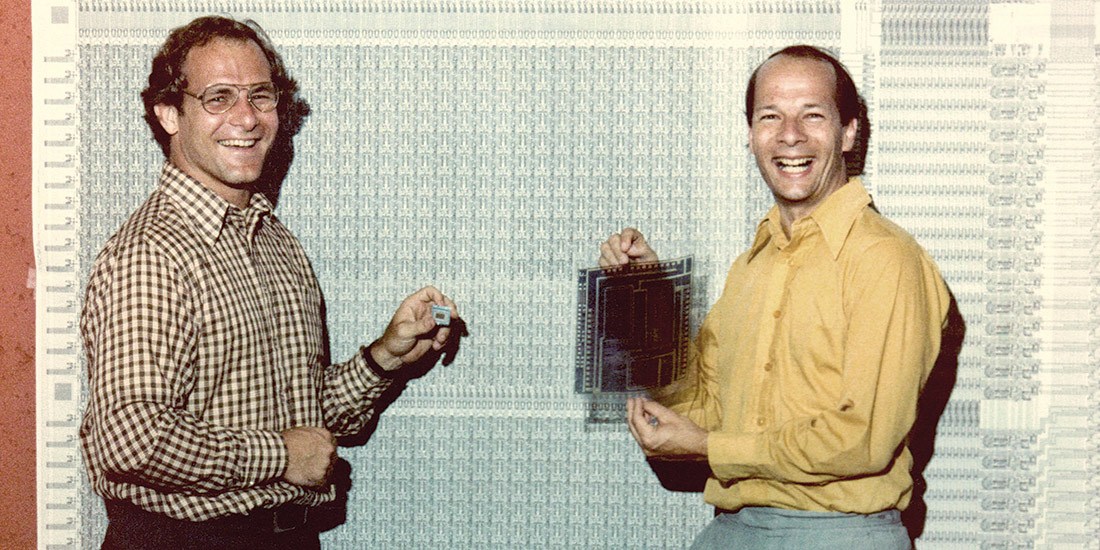 [1981년 버클리의 데이비드 패터슨(좌)과 칩에 탑재된 RISC 출처 구글 이미지]